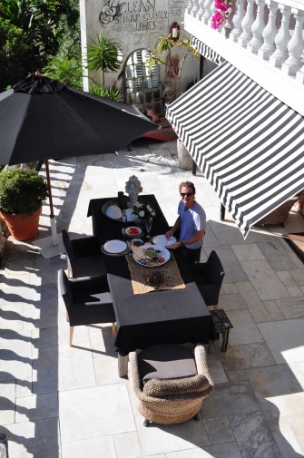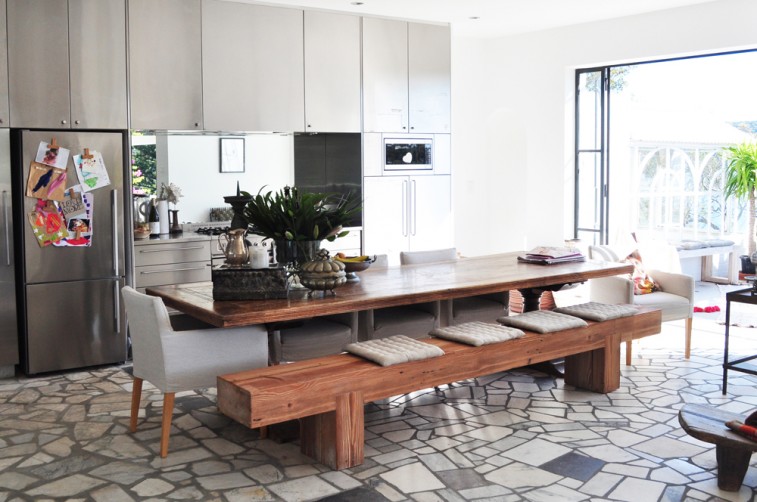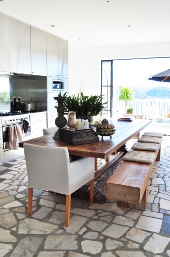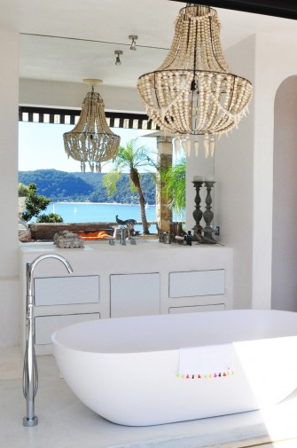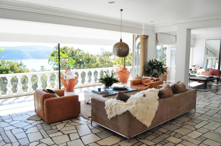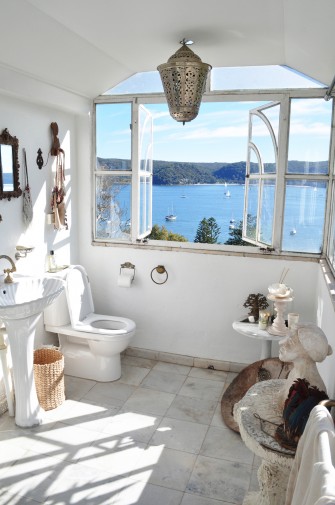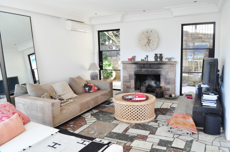 We drive further up the hill until we find an unassuming narrow driveway with shared parking spaces. I’m happy to get out of the car. One hour isn’t long but I want to be in the sun! Heidi has set the table on the patio with a light lunch: goat cheese, olives, cured trout. Classical music is playing softly over the speakers. “The kids are at the beach,” she explains when I tell her how peaceful it is. “Would you like a glass of wine?” she inquires. I nod, taking in my new surroundings. It’s a hot day and I’m in blissful heavens: This is my dream house. Built in the 1940s and at one point occupied by a flamboyant gay fashion designer and a celebrated Australian painter, the house resembles an Italian terraced villa. The entire front of the house facing the bay is open, basking in sunlight throughout the day and displaying breathtaking sunsets at dusk. The walls are covered in smooth white stucco and the windows kept in their original floor to ceiling frames. “The house has a colorful history,” begins Heidi. “We have slowly been ‘chipping away at the diamond’ with small to medium sized renovations and now have plans at council to make some significant changes like adding another story to the top level. I have designed a large room/walk-in closet as part of the new floor.”