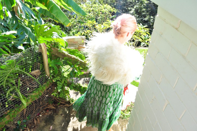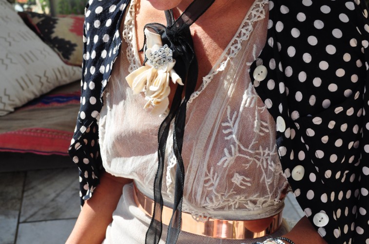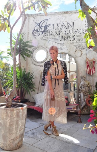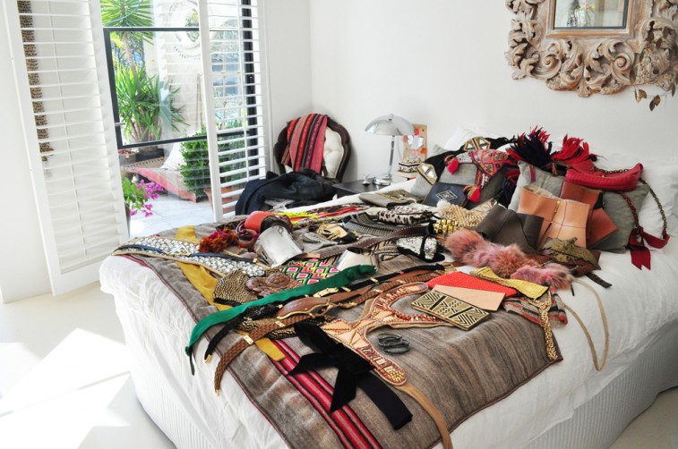 Heidi excuses herself for not having her entire wardrobe on hand. She packs and sends a new storage box of clothes to the garage every month. “Our entire garage is full of both vintage and archived Sass & Bide. My new bedroom cannot come fast enough!” Her outfits begin and ends with vintage. “It is what first fueled my love of fashion. I am at my happiest when I am clashing favorite vintage pieces with ‘fallen in love with’ new purchases. It is also what inspires me daily in the design room.” In a few words her style is “intuitive, nomadic, contradicted, spirited, modern and free”. She’s laid out what seems like a life time collection of Sass & Bides and vintage accessories on the bed and pulls out whatever vintage pieces she has in her bedroom this month. I am amazed at the ease and confidence with which she dresses. She has the natural ability to make any garment look cool – it’s a gift. We could have done this for a few more hours but the sun is setting and I have to snap back to reality. Maybe when Heidi itches to move abroad again – she lived in Europe for a few years – we can swap homes… Now wouldn’t that be a dream…