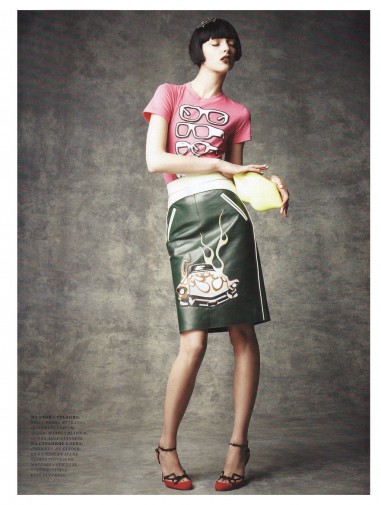 For my second styling story for the March issue of Russian Harper’s Bazaar we went for “cartoons” and prints with “real objects”. Not flowers, not stripes or dots, but real things, like cars, ducks and faces. I got a bit of vintage and mixed new and established brands. How we booked Daga Ziober was totally accidental, but I could not have wished for a better girl to dress. At 16, this Polish beauty booked 72 shows her first season! She made every outfit come to life and the entire studio team cheered every time she came out of the dressing room!!