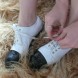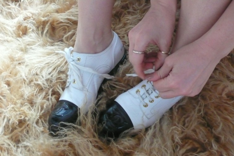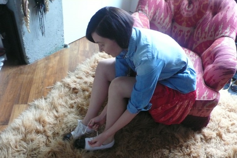 Fabiola’s dressing is the most central and captivating attraction of the 3-floor apartment. I admit I was a little dazzled – this is how I imagined the perfect closet. Shoes are neatly lined along the edge of the room; bags and hats are color coordinated and stacked on shelves; jewelry and sunglasses are readily laid out in a few drawers; dresses, shirts and jackets hang per category. Fabiola has been collecting vintage since she was 14. Most of her prized pieces are in storage, but the things she loves, she wears a lot. She keeps a little note book bulging with addresses and business cards of all her favorite vintage stores in the city. “One day I will make a real, printed guide out of this,” she announces.