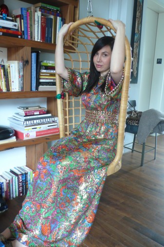 For now, she is my own personal guide, on a tour in her stunning closet. Now and again she asks me if I think she’s crazy. “Some people take offense to my cooky sense of dressing. But I love it, I don’t care.” She describes her own style as “dark romantic and bohemian”. And she’s very creative. For the Vionnet party, she pinned two jeweled brooches on a ribbon and tied it around her neck like a Victorian choker. For the Met Ball she customized a Vera Wang dress. For days she worked with the designer until it fit and looked to perfection. Her passion for clothes and vintage has become a joyous routine. “I could do this all day!” she giggles when I start taking pictures. “It would be my dream job!”