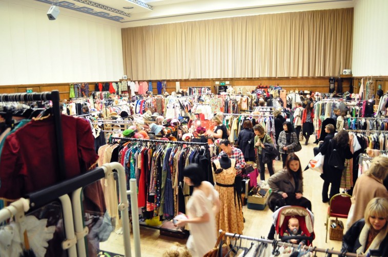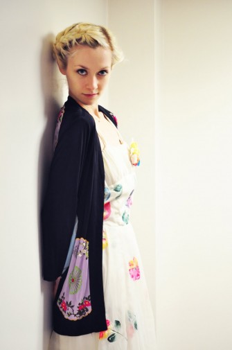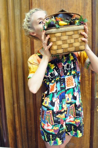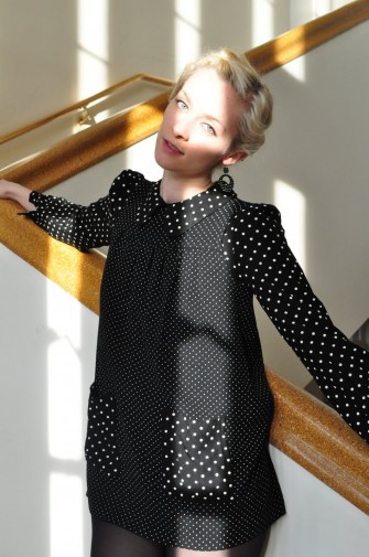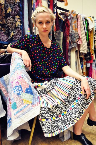 The London Vintage Fashion Fair takes place once a month at the Hammersmith Town Hall. It’s comparable to the Manhattan Vintage Clothing Show, only smaller and considerably less Couture. My muse for the afternoon is model-mom Portia Freeman. Described as “the modern day Twiggy”, 22-year old Portia has one of those unforgettable, intriguing faces. With her big blue eyes and quirky nose she often has a slightly fifties, rockabilly edge, but other times appears super soft and romantic. Her self-described personal style is “kinda mismatched. I like to wear slouchy boyfriend jeans with a vest top and blazer somedays but then on others I like to wear cute dresses or floaty blouses.” Portia started modeling when she was only 15-years old. She was scouted in London by a model agency and soon landed her first shoot for British Vogue with Mario Testino. Her most memorable fashion moments to date are “having worked with Alexander McQueen, my first runway show for Chanel and shooting with Steven Meisel.” Today she is the proud mom of 1-year old son Dylan and on the brink of a global comeback. She is the face of Charlotte Olympia’s current shoe campaign and short film noir, based on the mystery stories of Agatha Christie. And here’s a bit of a prime scoop: in honor of her model and muse Charlotte Olympia has just named a new season shoe ‘Portia’! I wish I could show you the shoe but unfortunately only Portia has seen it – so hot it’s still on the press!
