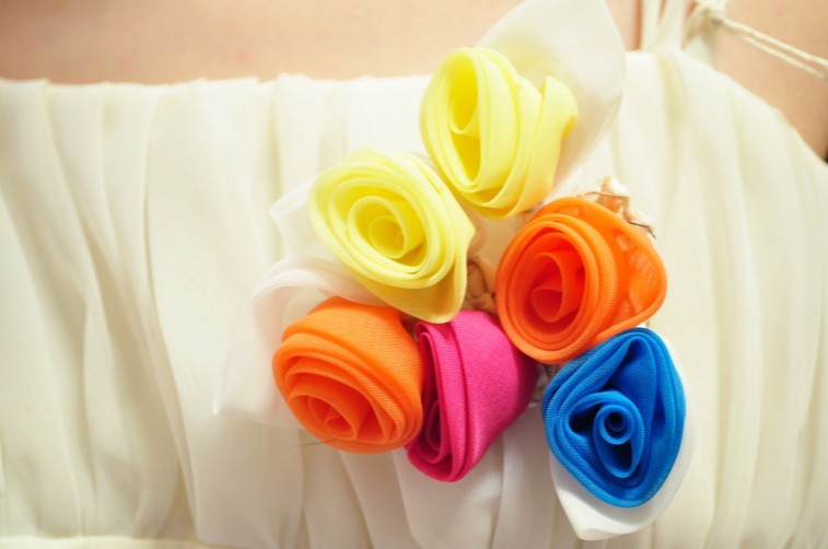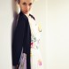 Oh my, I love the "Cream organza prom dress with hand printed flowers, navy cardigan." It's divine…