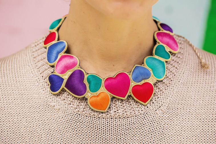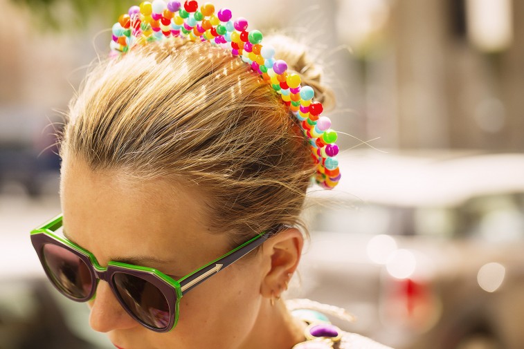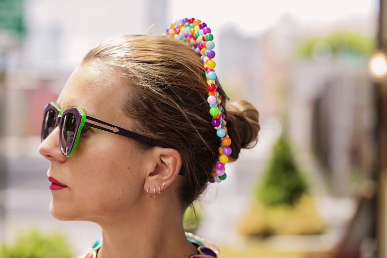 I could have given this post any number of titles… I could have named it ‘Beaded‘ as an ode to my favorite little accessories designer in Buenos Aires, Mariana Diaz of Delduca. She reinvented an old technique from the 50s and 60s and uses beads (acrylic, plastic, crystal or wood), nylon thread and a pair of pliers to make bags and necklaces in color combinations and patterns that make me weak in the knees. You know how you can sometimes just be grateful something exists, even if you never knew it could make a difference in your life? It’s those little things… (I joke.) I don’t quite remember why I felt inclined to stick one such necklace on my head and wear it like a crown, but it was quite a revelation and one that none of my fellow subway riders on the L train were ready for…