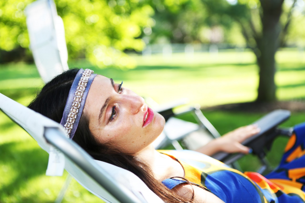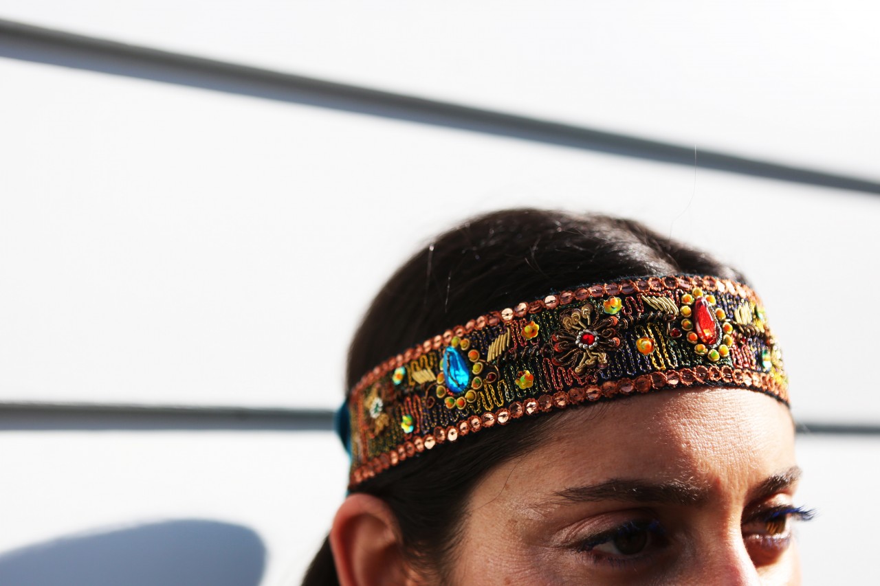 She owes most of this description to her trademark headbands though. She wears them low, just on top of her hairline, bejeweled, velvet, wide or thin. If anyone in New York ever dared to wear one of those headbands they’d only be scorned as desperate copycats. Arden is the only girl who pulls them off and she’s been doing it well since she was fifteen. Now thirty, she collects them, makes them, customizes them and treats them like ornate accessories. “I don’t wear any other jewelry so it’s like my head’s ring!” she triumphs.