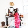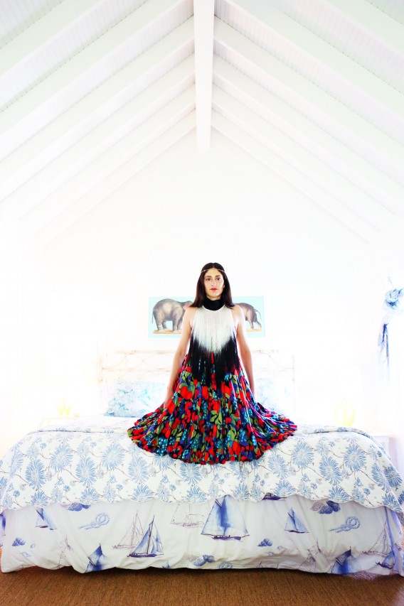 The toughest challenge she faces is finding “quality shoes and bags”. She buys most of her shoes at Stella McCartney, even though she knows they come with a hefty price tag. Finding a cool, affordable alternative has been a personal quest but has thus far only procured less-than-satisfactory back-ups at Melissa or the plastic Givenchy gladiators. But “how far does one want to take it?” It’s a debate she struggles with every day. A couple of years ago she sold everything leather and non-vegan she owned, determined to leave her life as an animal-eater behind her. But today I watch her devour an entire wheel of sheep’s milk camembert . “I love cheese!” she admits. “I hope this doesn’t gross you out!!” she laughs as she continues to scoops lumps of goo with her fingers. “Most vegans won’t have honey or even wear wool or silk because it is such a hard thing to regulate and be sure of. I know a vegan who keeps her own angora bunnies and makes a sweater a year because she cares for them and trims them.”