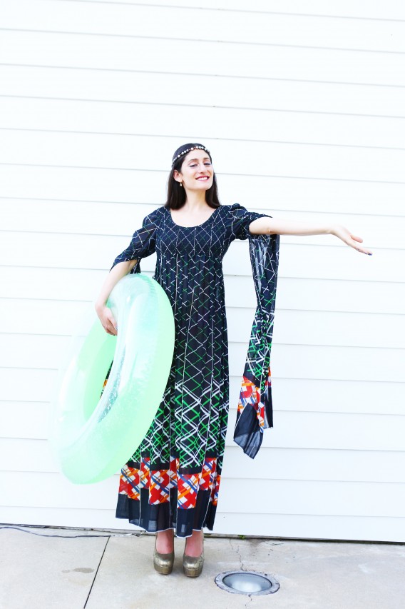 And then there’s the vintage. She’s a fervent collector. She shops at South Paw and Resurrection and has steadily built up a collection of fantastical Marimekko, Zandra Rhodes, Karl Lagerfeld for Chloe, Chanel, etc. For someone who describes her style as “colors, patterns, head-to-toe”, vintage is the perfect escapist and environmentally acceptable route. With every sweeping dress, a matching head band and a pair of vegan shoes. It’s a perfectly pure and green way to live, for any Princess.