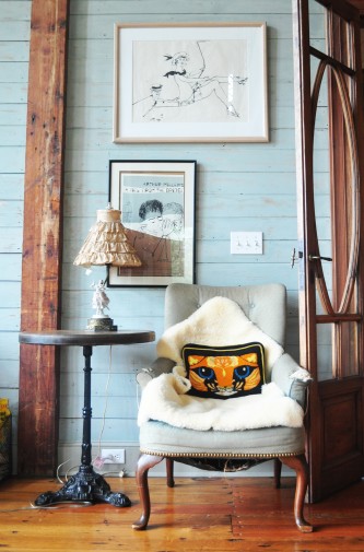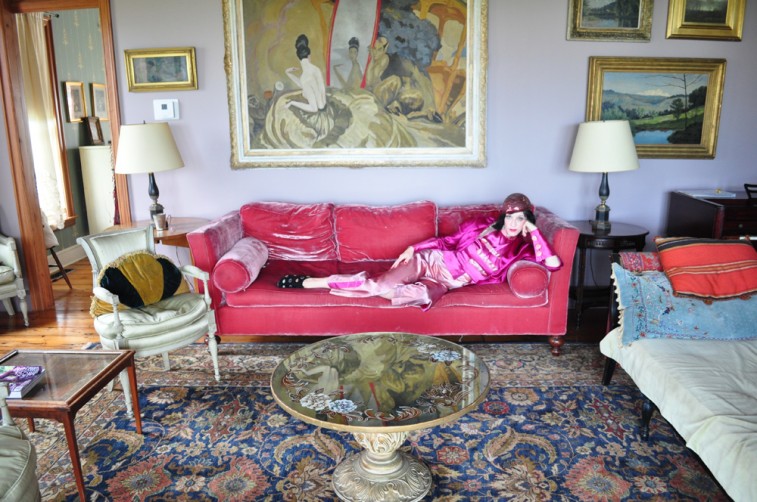 Luckily Sarah Sophie Flicker doesn’t have to worry about dressing down. She’s an artist who makes a living doing exactly what she’s good at and loves. And she has an equally incredible and creative group of friends who all seem to be dipping into each other’s pots of gold. For starters she’s an Editor at Large at Lula, that super cute fashion magazine out of London. “I think it is such a positive, feminist and smart publication!” she attests. “Aesthetically, it really speaks my dreamy, mythological language a well.” Then there’s the production company she started with her friend Maximilla Lukacs, The Belles of Black Diamond Field (named after the first female coal miners around the turn of the last century). They makes art films, music videos (including some for Karen Elson, another friend) and lately, fashion films. She also writes for Zooey Deschanel’s website, Hello Giggles, about whatever blows her skirt at a moment’s notice. “It seems to be part of a pro-girl, pro-feminist, pro-fashion, pro-flouncy, girly, lace-y movement that I love,” she dotes. And then of course there’s The Citizens Band, a social awareness cabaret act she started with friends in 2004 after Bush was re-elected and sadness about the political climate kicked in. They refurbish old and original songs that tell the story of what goes on in the world politically today. “Right now Depression Era music is really informing the shows. It’s comforting, on the one hand, to know that we’ve been here before, we got out of it, and we can dig our way out again. But it’s also crazy to think that we are repeating this same cycle all over again and that we learned nothing from it the first time. So, really, the world is endlessly inspiring, or depressing, depending on how you perceive it. On the other hand, there is a lot of singing, dancing, trapeze-ing, showgirl shenanigans, and old theater tricks to keep it fun and otherworldly.”