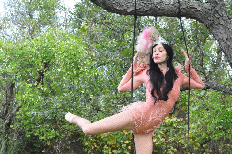 “Halloween is a lot of pressure for someone who likes to dress up as much as I do,” answers Sarah Sophie when I ask her what she wore this weekend. “People expect major costuming but I’m actually not that good at it!” Maybe it’s because she’s NEVER out of character. Maybe it’s because she lives a life of fantasy and magic ALL year round, creating a world of fun and games for her kids. Or maybe it’s because Sarah Sophie Flicker thinks that Halloween is “amateur night” and EACH place, each day, rain or shine, should be looked at as an opportunity to hopelessly escape into another time. She takes on-line ballet classes with Mary Helen Bowers, who trained Natalie Portman for her role in Black Swan, and pretends to be a ballerina. She performs as a trapeze artist with a gang of modern day troubadours called The Citizens Band. And she gets lost in so many eras it’s impossible to wear sweats and a T-shirt. And why should she? She’ll be a “flapper gal”, or “hippie earth mother” (when she’ pregnant) or “chorus girl on her way to rehearsal” before she’s the “girl next door”, even if you ask her to play one. “Part of my downfall as a commercial actor was that I would get called in to audition for an “all American girl” and I just couldn’t do it.”