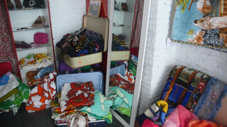 Our first stop was Jutka & Riska (Nationale Straat 87). Whenever I visit Antwerp this is the first stop I make. The store mixes new and vintage clothes and accessories. You can spend hours in there – so many cute trinkets and funny nick nacks! The displays are colorful and inspiring. At the time of our visit someone had just consigned a bunch of vintage Leonard. And since I am a fan, I decided to make an ode to Leonard.