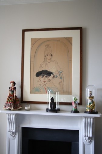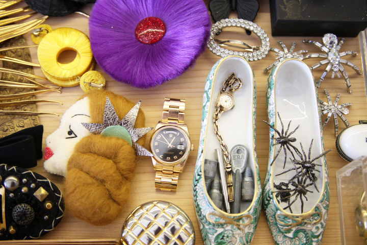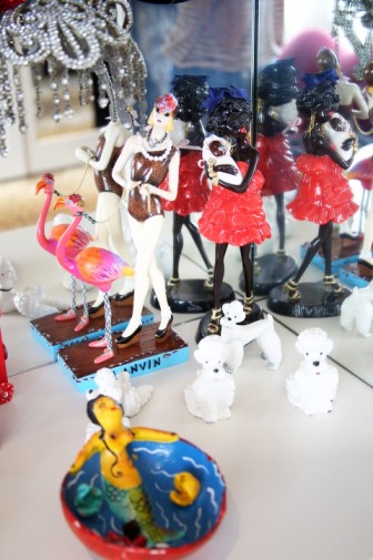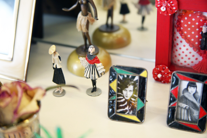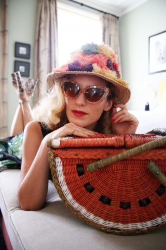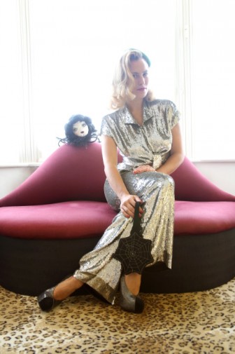 I am really surprised when Charlotte tells me she doesn’t own much vintage. I thought we’d be drowning in frocks and feathers! “I have some pieces that belonged to my mother and grandmother, but I mostly buy hats, accessories, furniture and objects, things that are easy to buy on-line and that don’t need to be tried on. I think you need a lot of time to buy vintage and I’m not the best shopper; I don’t have the patience,” she confesses. This is fascinating! And a first! It’s kind of like a reversed kind of retro. Here’s a woman who looks like the bygone era of the 40s and 50s, with the blonde coiffed hairstyle of Lauren Bacall or Rita Hayworth, whose biography she’s reading at the moment (her hair was also naturally much curlier), unwavering red lips and half moon nails, but who hasn’t set foot in a vintage store in years! “My outfits may look nostalgic but I’m not trying to be retro. I just reference an era that I love.”