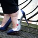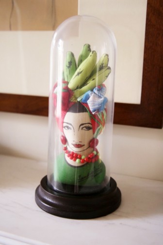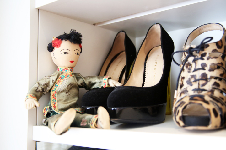 Charlotte’s house is full of those references and they’ve all at one point influenced her famous shoe designs. She’s passionately obsessed with Carmen Miranda dolls for example. Her SS11 collection ‘Blame it on Rio’ procured a fruit shoe dedicated to said samba dancer and is Charlotte’s personal favorite. She also read every single Agatha Christie novel to date and named her Fall 11 collection ‘To Die For’. And she loves mermaids, so much that the SS12 ‘Sirens’ collection included “shoes that mermaids would want to wear if they had feet”. This is serious! So what’s up with the spider web logo? A fascination with eight-legged creatures? “When I started my business (her first collection launched in 2008) I wanted to build a brand,” she explains in a dry voice. “The spider web logo idea came from the children’s book ‘Charlotte’s Web’. Some people get it straight away.” (I guess I didn’t?) “But ironically I’m scared of spiders!”