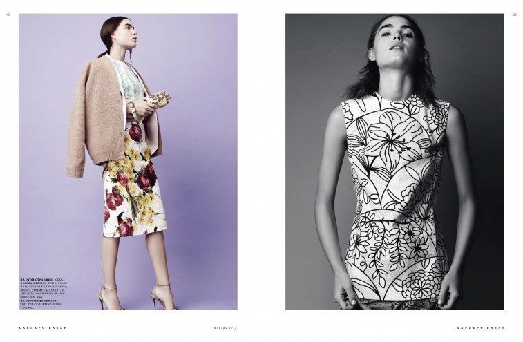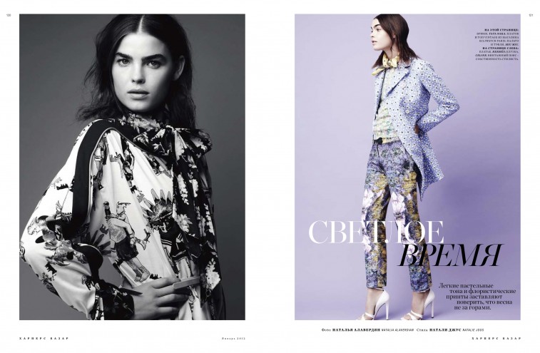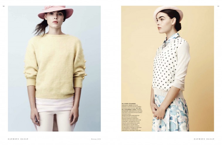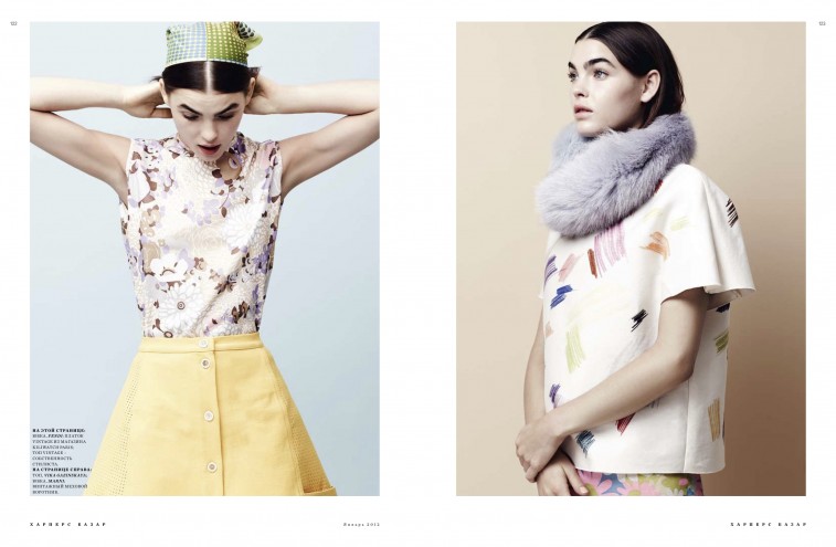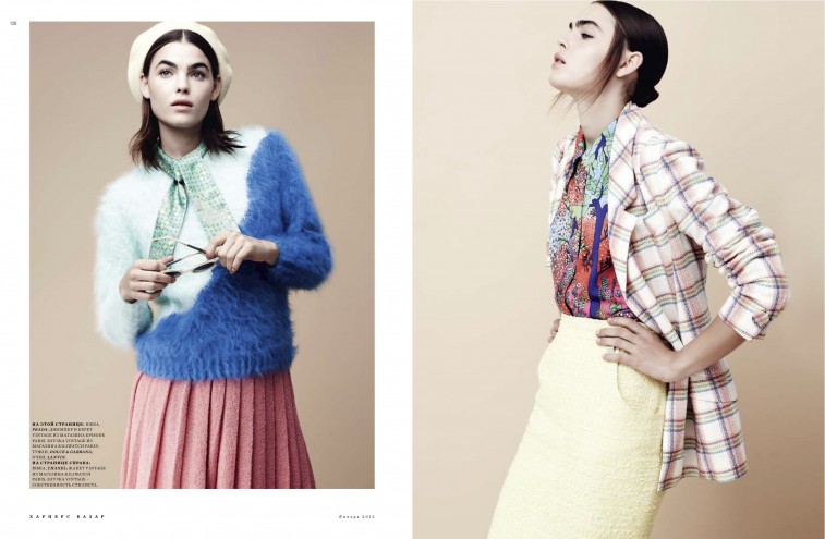 Six months ago I proposed to the Fashion Director at Harper’s Bazaar Russia to work together on a story. Natasha Alaverdian, the teeny little cutie we see pop up on the street style blogs every season had recently started styling AND shooting her own editorials for the magazine and I thought I could/should relieve her petite self of some of the pressures of pulling clothes, managing cameras and juggling models all on her own. She said YES! and we planned to shoot a mix of pastels and prints from the resort collections during Paris Fashion Week. I borrowed a few vintage pieces to recreate my comfort zone and booked Bambi Northwood-Blythe with Elite Paris. The result is this 12-page fashion story, the first of many more, because I had SUCH a ball styling!! Thank you Natasha and Daria for letting me do my thing!