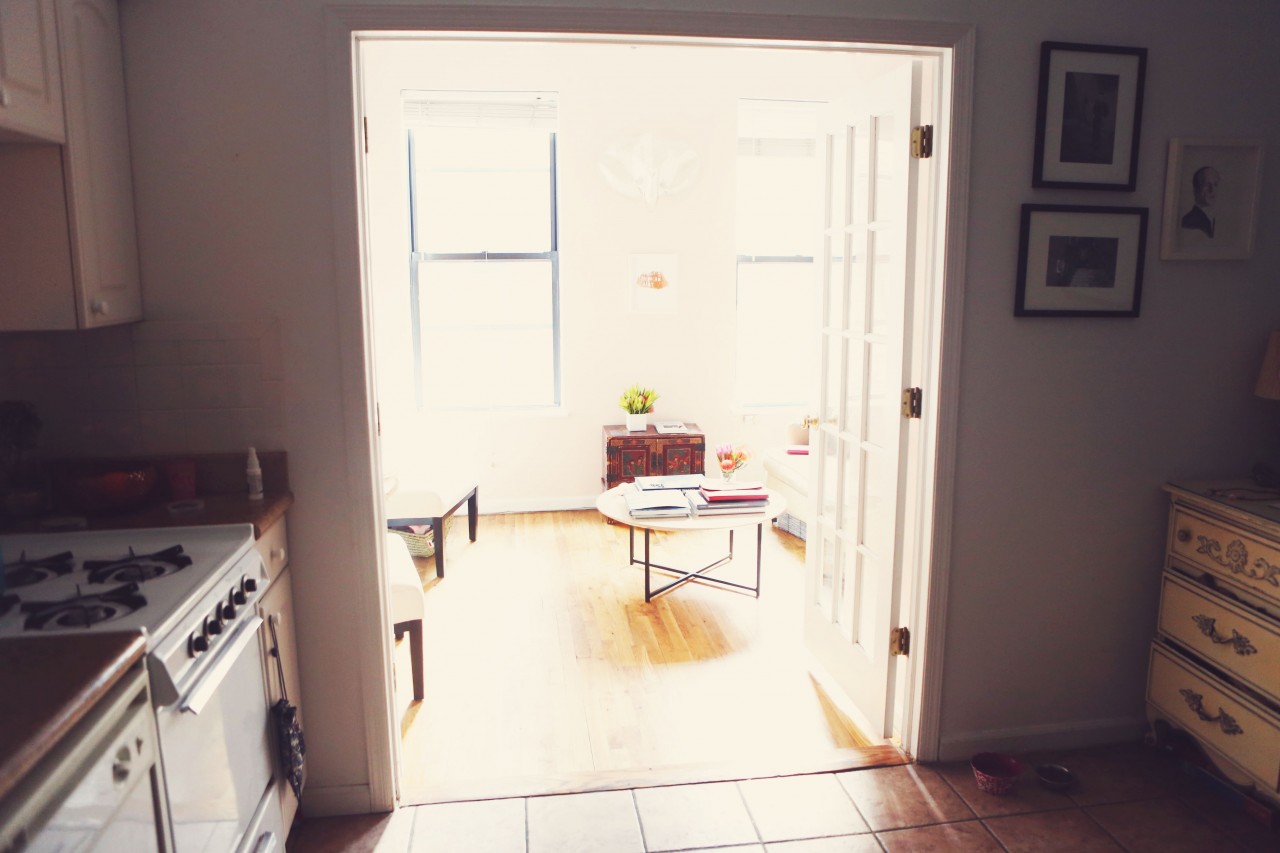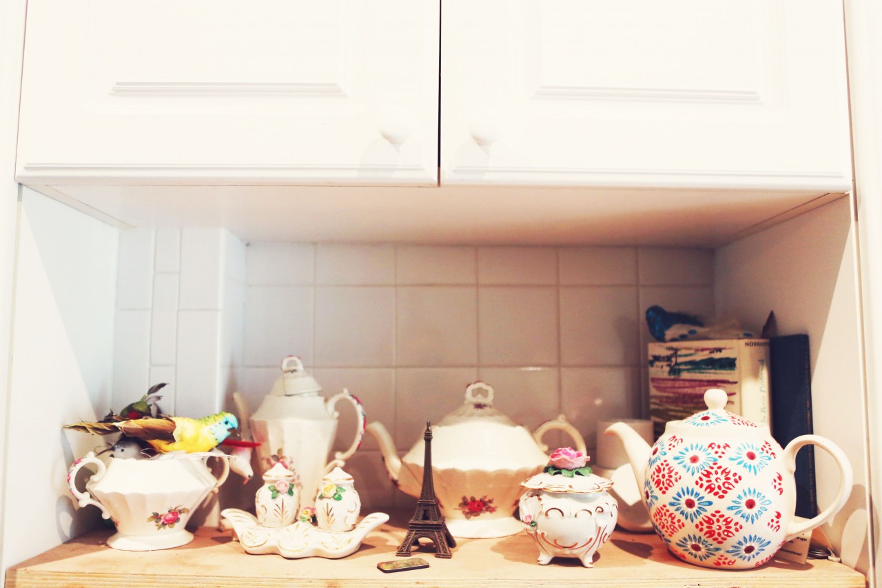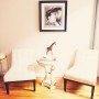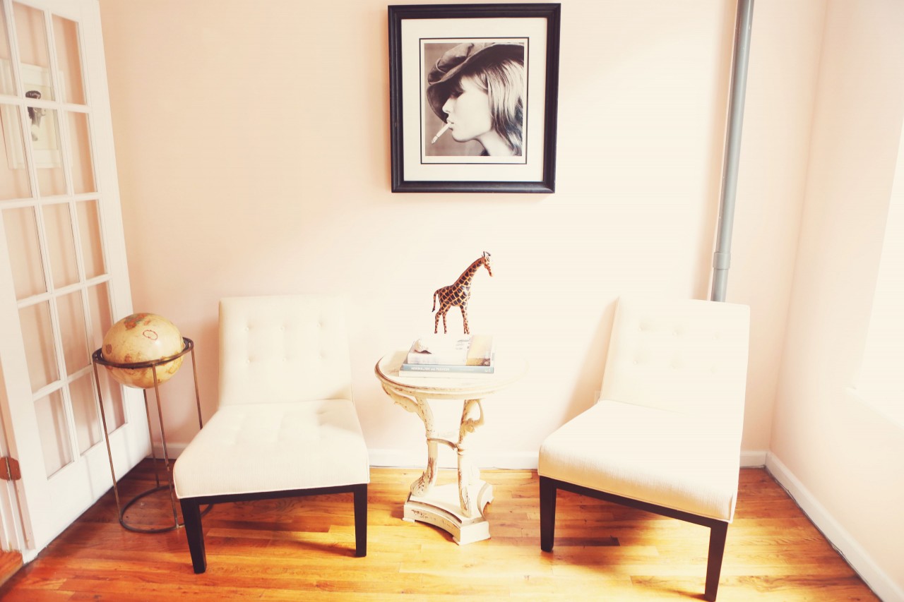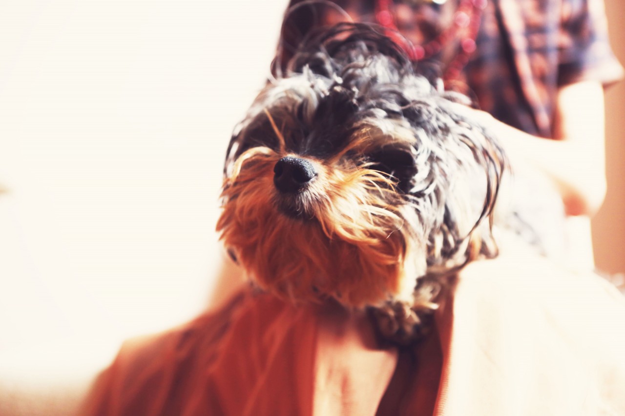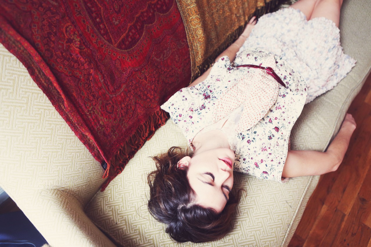 Nora Zehetner lives in the East Village. The last time I was in her walk-up apartment I fitted her for Katie Ermilio’s video look book shoot. She wore pastel pink satin gowns for spring and darted through the streets of Williamsburg like a character in a Jacques Tati comedie. Today we’re talking vintage and it’s freezing outside and we can’t find the mascara. But the tan little poodle puppy is practically in the same spot, protective and loyal, jumping from her basket to Nora’s lap and back. Ellie has been blind since birth – Nora got her when she was just one – but both girls have found perfect living symbiosis. “We never knew each other any other way. She’s super tough – absolutely fearless- it’s very inspiring. But I do have to be careful not to move furniture around or leave things on the floor because she memorizes the lay-out of the rooms and she is likely to trip over or run into things if they aren’t where she is used to them.” Nora’s clothes are stored in the bedroom. She doesn’t have much but every piece is meaningful: her grandmother’s jewelry, hats she bought and shipped from a small town near her mom’s house in Dallas, sweet designer dresses and shirts with bird prints. In fact, there are birds everywhere. “I love birds! I guess I had unconsciously been buying things with birds on them for years. And a few close friends call me Nora-bird and so they always buy me things with birds on them as well.”