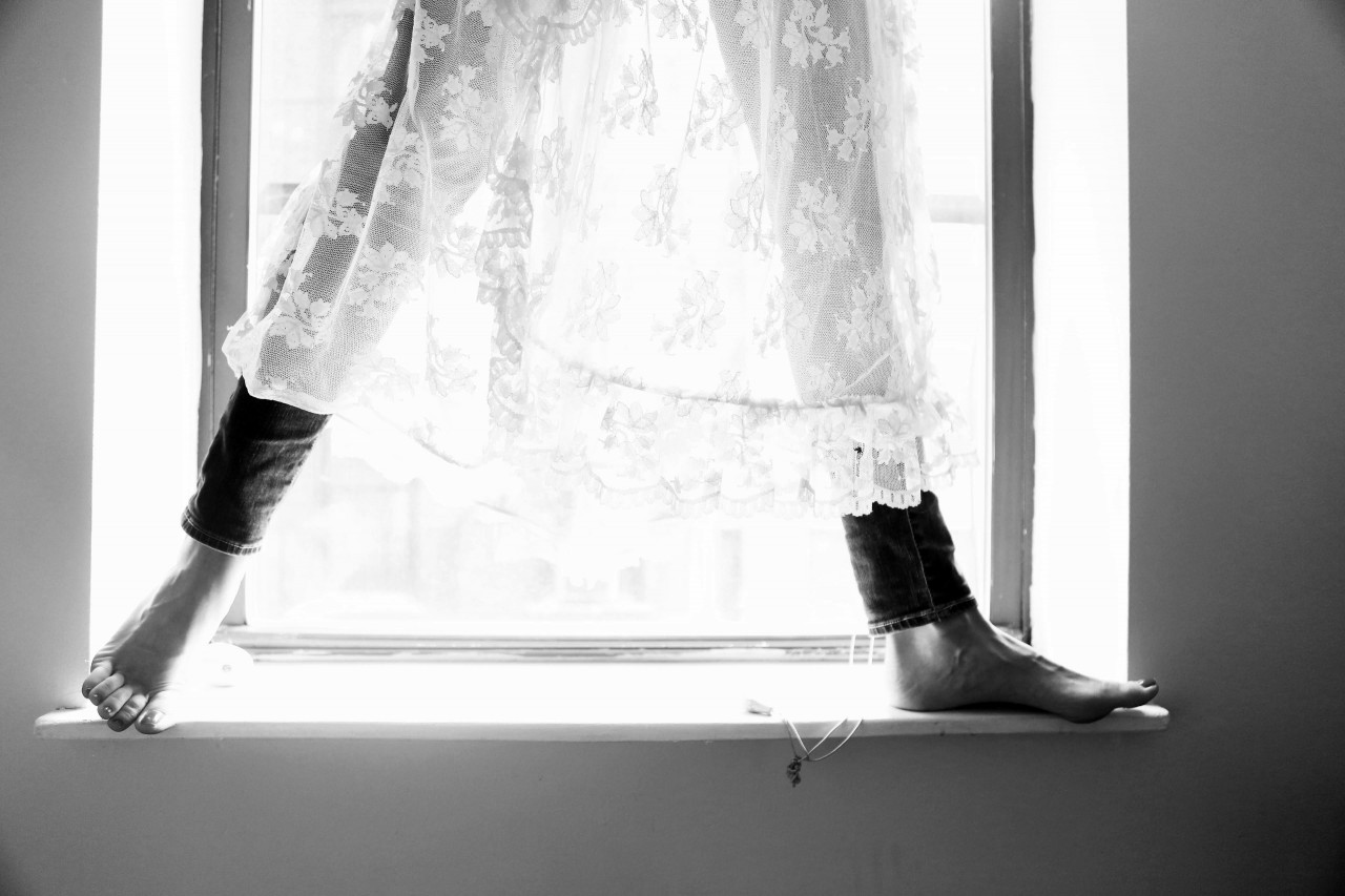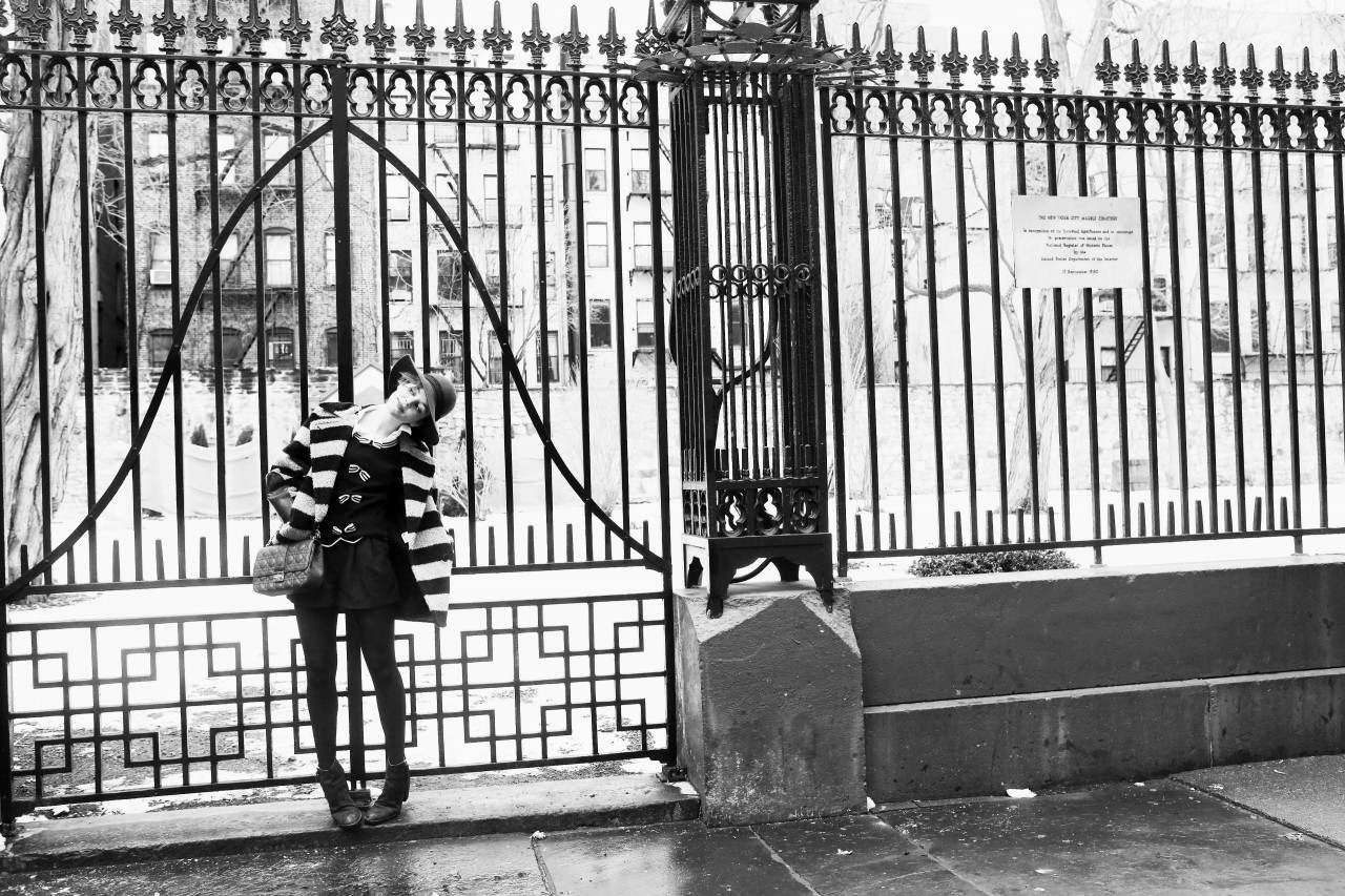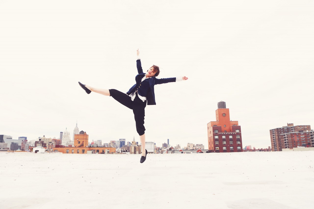 As the day goes on, I discover a Nora who’s consciously reserved but purposely outgoing. She’s serious by nature but knows how to mandate a youthful, assembled spirit. She pulls funny faces, climbs furniture, smiles mischievously, dances like a page boy, and gets into girlie retro character. Though her self-proclaimed clumsiness is somewhat surprising, everything makes perfect sense. She’s not snooty, or crazy, she’s a creative East Village girl who lives a quiet, soul-searching life and loves to make breakfast. “I think egg sandwiches are the greatest thing in the world!” she claims. “I think I have a million variations on the egg sandwich. But the basic one is just a fried egg with Parmesan, open-faced on sourdough bread with mustard and cornichons. I love pickles and vinegary things. I pretty much eat like a pregnant woman always.” Gluttony aside, Nora is a pleasure. After a few changes she finds herself back in the bathroom, applying lipstick, when her tummy starts to rumble. “So silly I didn’t eat breakfast,” she complains. Maybe that’s why she’s can’t find her mascara this morning…? “Aaah, found it!!!” she cheers. And the picture is perfect.