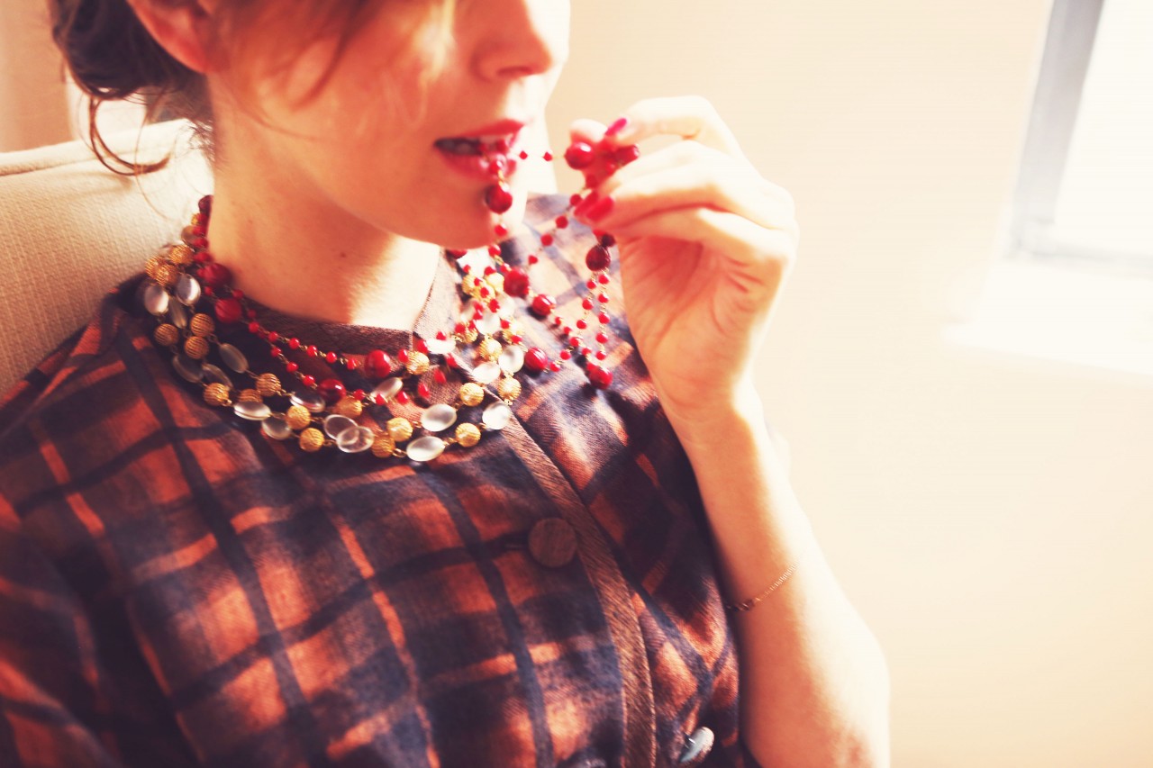 Hi! The necklace is by Sophia 203. I shot the rainbow version of it previously: http://talesofendearment.com/miss-favela/. Thanks for reading!!