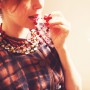 Can anyone identify that necklase she is wearing with blue hearts? I saw it few years ago while accidentaly passing by a parisian boutique in the middle of the night – which I never managed to find when looking for it during daytime! Really love it 🙂