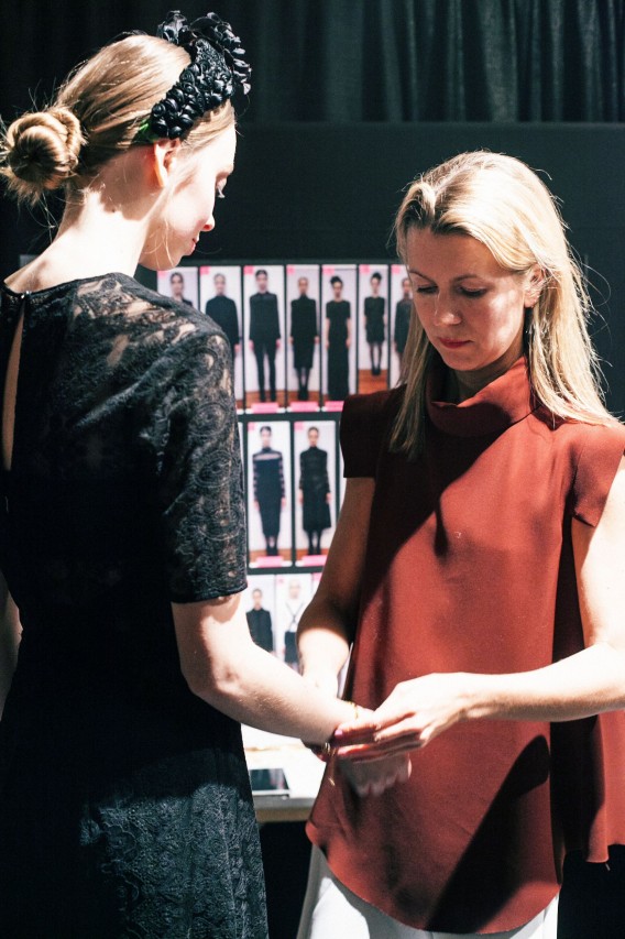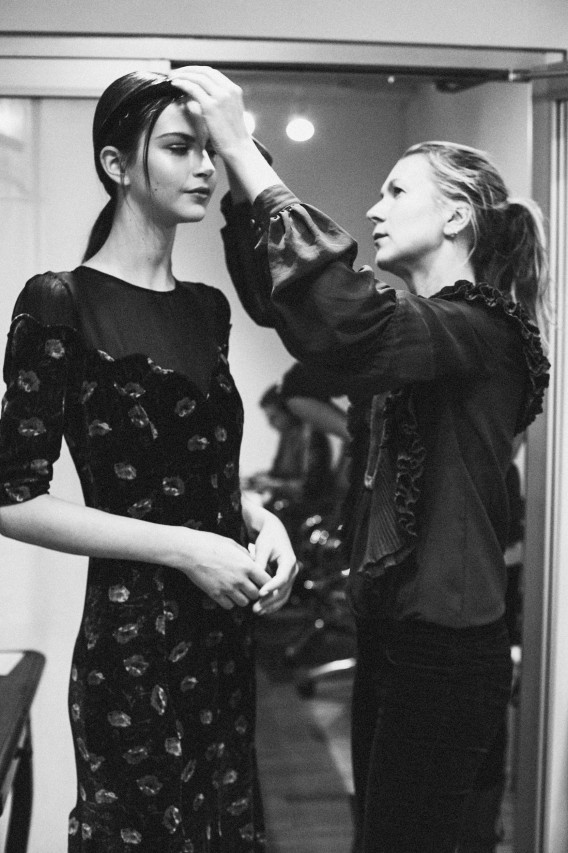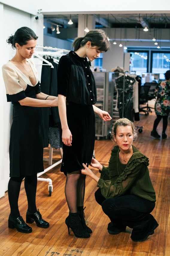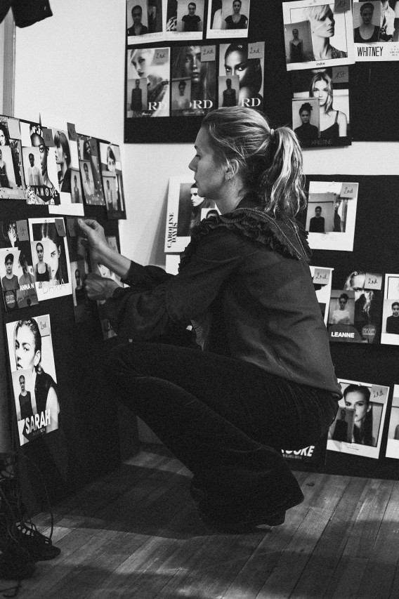 And that’s how the designer had wanted it. I have worked with Charlotte Ronson for a few years. First solely as Casting Agent, but for the past two collections also as Stylist and Consultant. As soon as Charlotte has conceived the idea for the season’s look and the first sketches are made, I come in to give my two cents. We add and delete pieces, debate on fabrics, buttons and finishings, and edit all the way up to the moment the entire collection is ready for fittings. Nothing is set in stone until the girls are on that stage. It’s a fun and creative process with developing ideas and euphoric epiphanies. But from the get-go it was clear that Charlotte was headed in a more serious direction for winter. We introduced an inverted pleat in jackets and skirts, made a gown – the first one ever – and designed a signature black crepe suit for example. I’ve also discovered how much sense it makes for a Stylist to cast her/his own models. I know exactly which girls I need and where to get them.