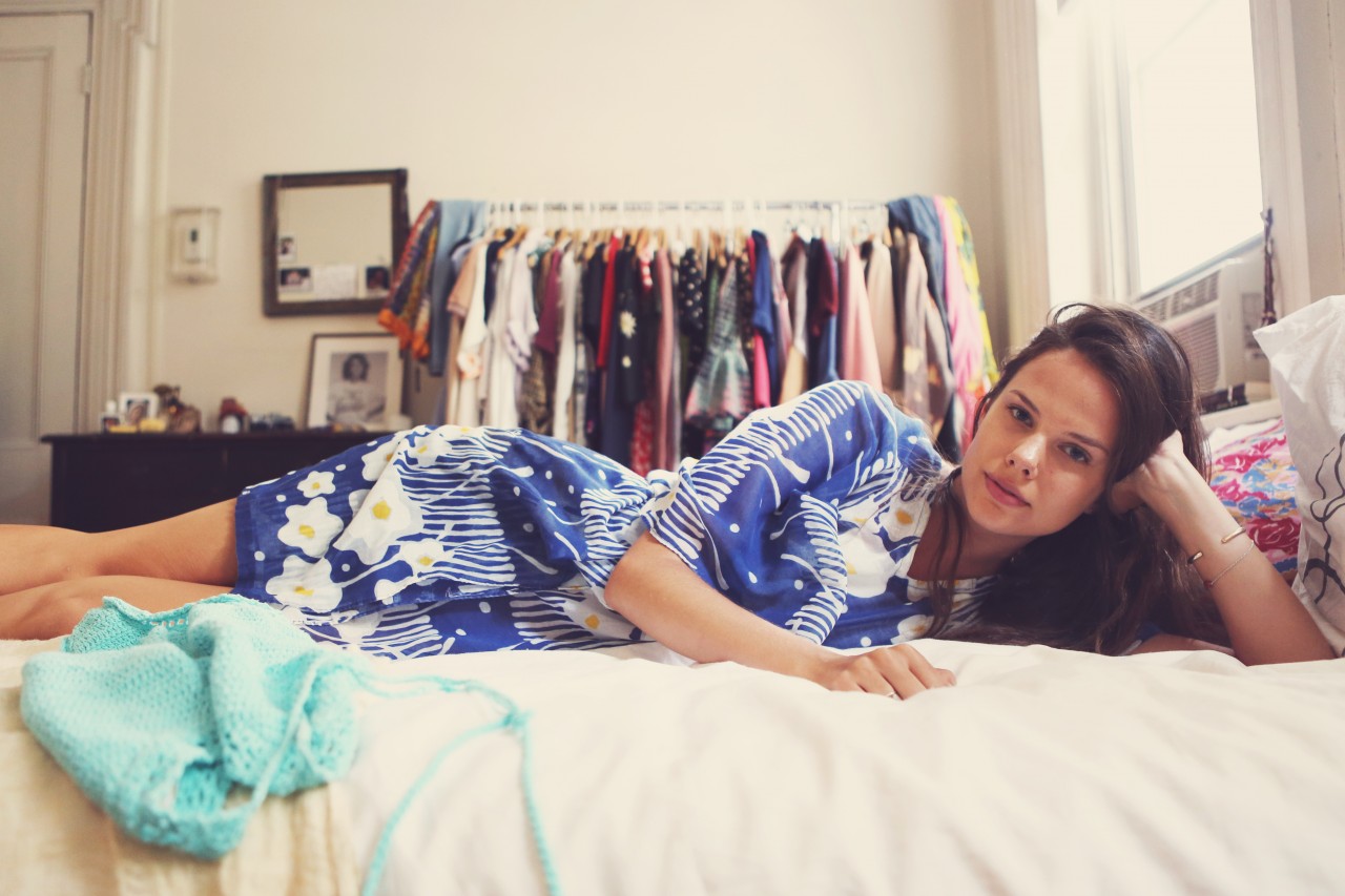 Molly is a happy 29-year old girl with a hospitable, giddy laugh, delicate, artful taste and the kind of cheeks you want to pinch. She collects old polaroids that she sends to friends as birthday cards. She loves embroidering “anything from pillow cases to underwear”. And still cherishes a signed photograph of Bernie Kopell (who played Doc on Love Boat) – “It says “Happy Sailing Molly!”. When I was twelve I met him at a celebrity convention at the Beverly Garland hotel in Los Angeles and thought that was pretty amazing…..” She admires Carolyn Bessette‘s off-duty 90s Tribeca style, Maria Schneider‘s wardrobe in The Passenger, and Diane Keaton‘s character in Interiors. Her mantra is Dolly Parton’s ‘Better Get To Livin”, with a pillow case in the bedroom to prove it.