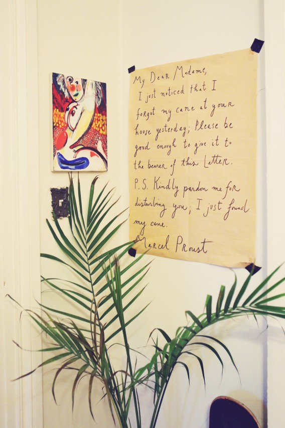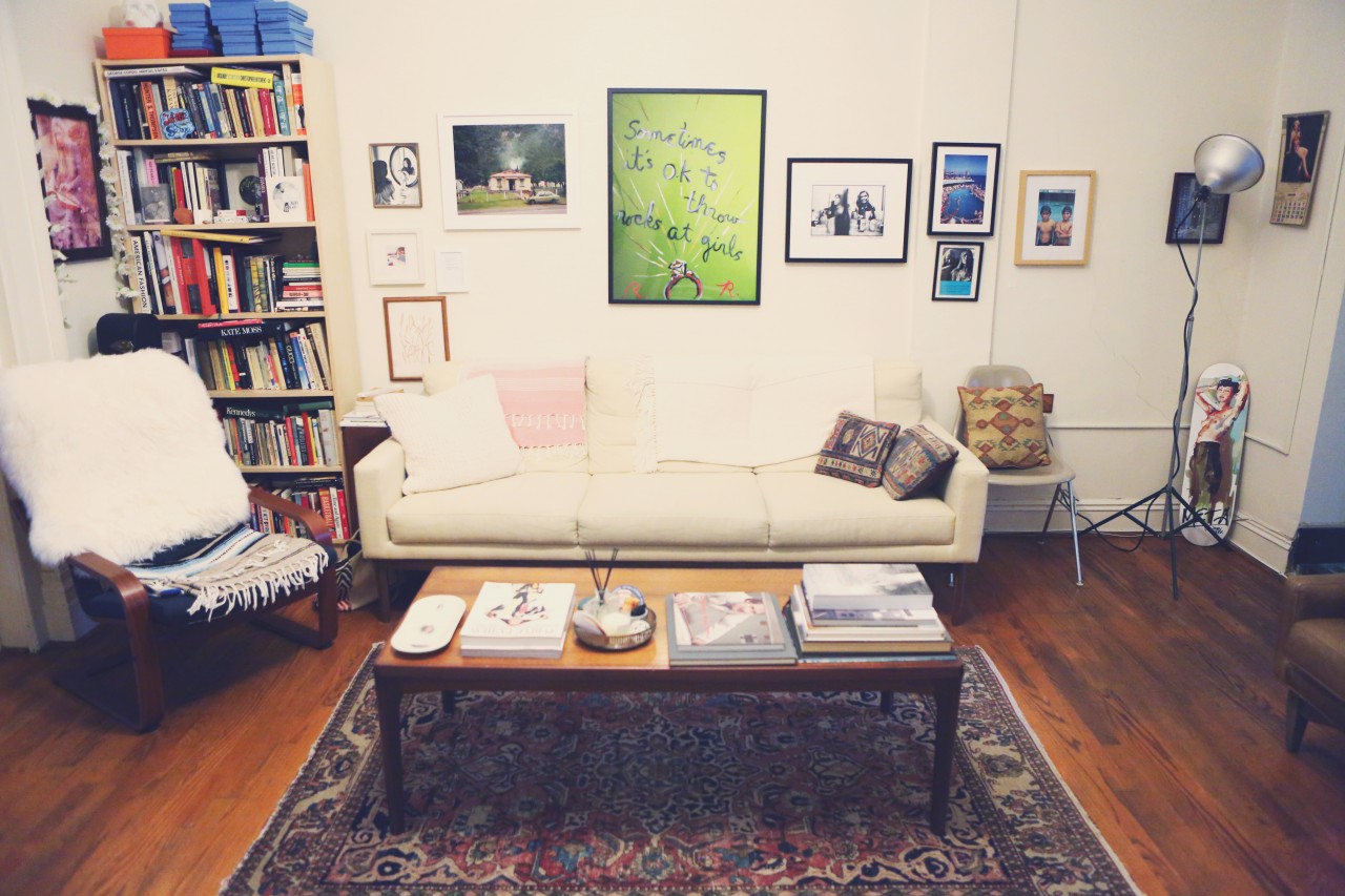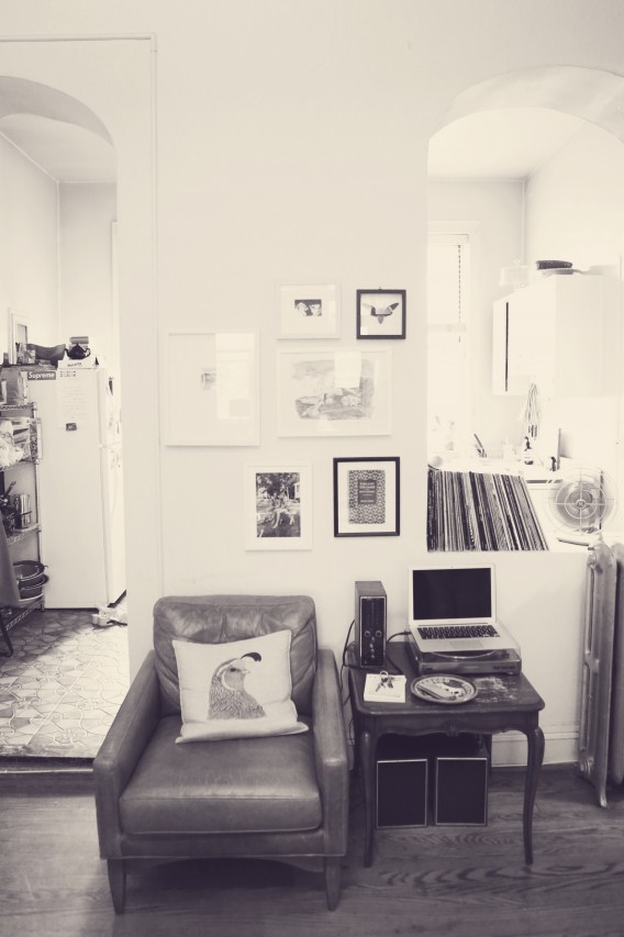 I ponder these questions during my hypersonic trajectory underneath the Hudson River and the five minute walk to Molly Kennedy’s one-bedroom apartment on Garden Street. It’s a lovely neighborhood with lots of green and fetching little townhouses. It’s also quirky; a mix of institutionalized kitsch and the inevitable hipster infusion. And obviously Molly is all smiles when she opens the door, because she doesn’t get that many visitors “from out of town”. “You made it!” she cheers. I can tell she was worried about my commute. But I passed the test and welcome a world of crochet tops, Indie music and picture frames.