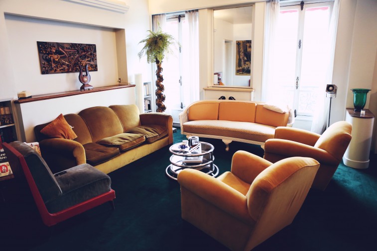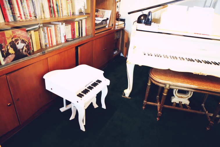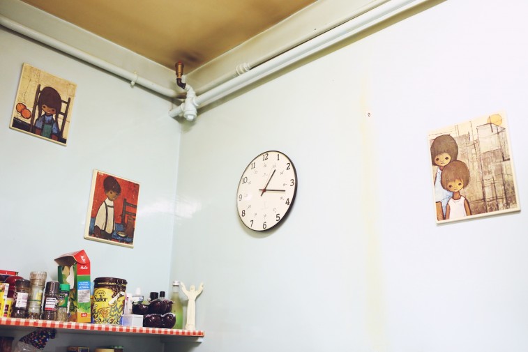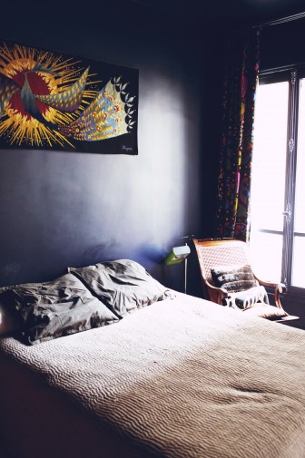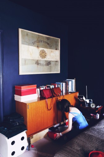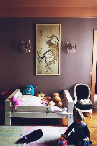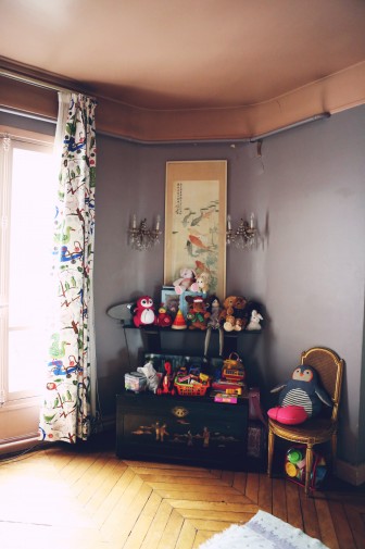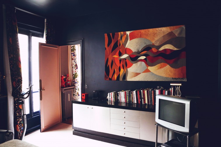 Vanessa and her musician husband Bertrand have been living in the apartment for over 15 years. The place used to belong to one of Edith Piaf’s impressarios and they’ve tried to respect the original decor as much as possible. “The electric circuit is giving us terrible problems,” Bertrand complains, “but if we would have had builders in here they would have destroyed everything, so we didn’t touch anything.” The arrival of “la petite Jacqueline” who’s almost three now, Bertrand’s massive music archive and the rampant accumulation of Vanessa’s vintage collection has left visible marks on the chaos and clutter in the house, but I would not expect anything less of such a creative family. Everything and everyone has its own allocated piece of purpose.