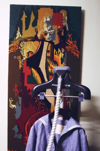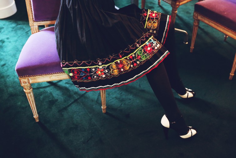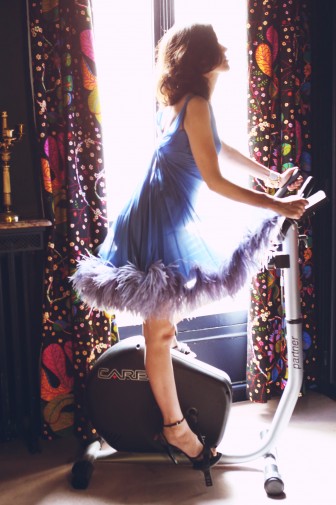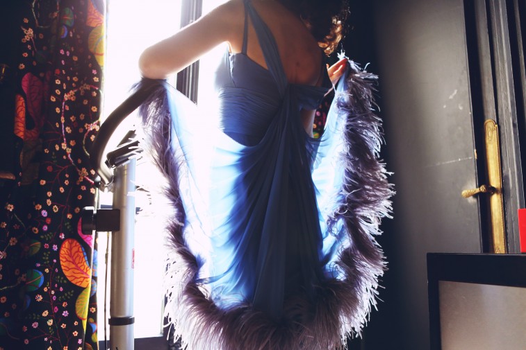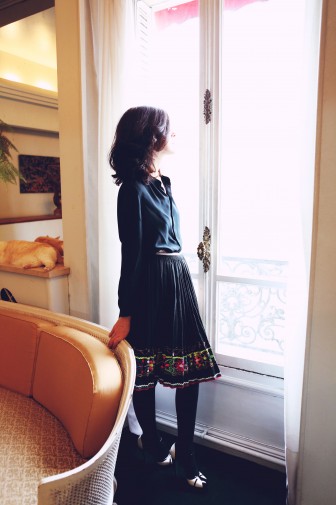 “I’m a little bit embarrassed about how many clothes I have,” confesses Vanessa when we take the elevator three floors up to her storage spaces. “Is it bad to have this much stuff?” Who am I to judge? My eye balls almost pop out of my head at the sight of all the high-end vintage she has: two inefficiently-lit mini-bedrooms stuffed with shoe boxes and racks of garment bags, each containing the rarest pieces by Yves Saint Laurent, Azzaro and Chanel, a few authentic Argentine skirts and some of her mom’s boleros, Chinese dining jackets and ballroom taffeta skirts. “Why don’t you go through them and choose what you want me to wear?” she suggests. Will I ever?? I couldn’t have been more greedy if you paid me. We end up lugging arms full of dresses, skirts and coats down to the apartment and get into the groove of things. Eventually Vanessa’s cough gets the best of her, and we have to abandon our dress-up party after the fifth outfit. It’s day three now, and she must turn off the machine.