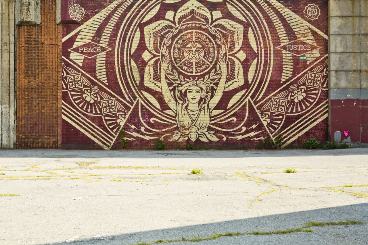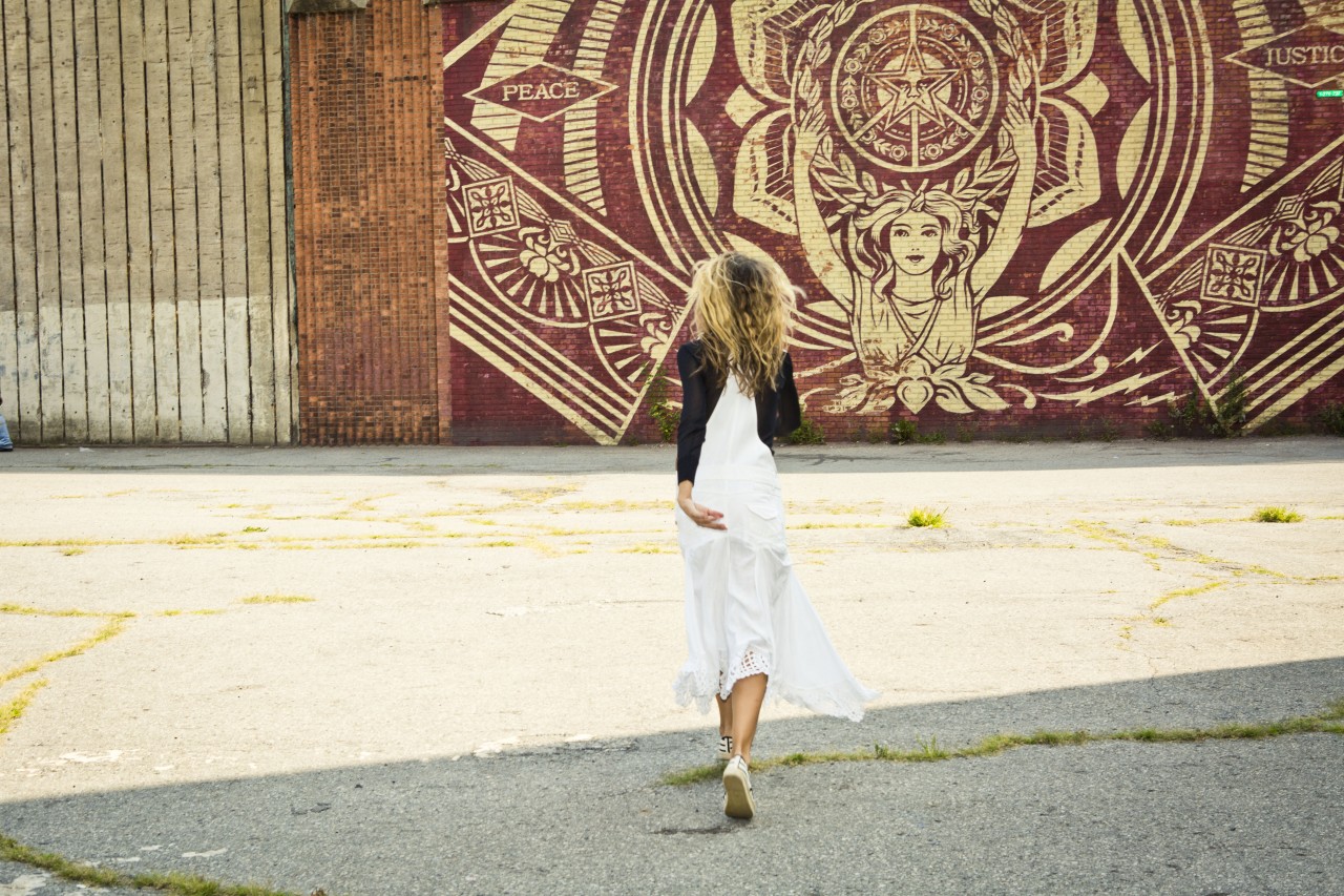 Whether it’s good or bad, there’s no shortage of street art in New York. You’d be hard pressed to find a pristine wall in the city. But in Dumbo they thought: let’s just get some more, shall we. And do it proper. The Dumbo Walls Project rallied up eight renowned artists to provide giant murals under the Brooklyn Queens Expressway. And since last summer, that area, just off the F stop at York Street has become a destination. On a recent bike ride from Williamsburg to Smorgasburg on Pier 5 in Brooklyn Bridge Park (which takes less than fifteen minutes by the way) I discovered the work by Shepard Fairey (famous for his “Obey the Giant” stickers and the “Hope” graphic for Barack Obama’s presidential campaign in 2007-2008) and two huge Yes murals by Sagmeister & Walsh in collaboration with Yuko Shimizu. I love the scale of them. Very impressive.