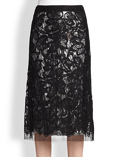 Wearing: Black lace skirt by Tome; Ruffle top by Ellery; White pumps by Jimmy Choo; Bag by Paula Cademartori; Burgundy sunglasses by Oliver Goldsmith. Vintage cross earrings from Le Grand Strip, Williamsburg.