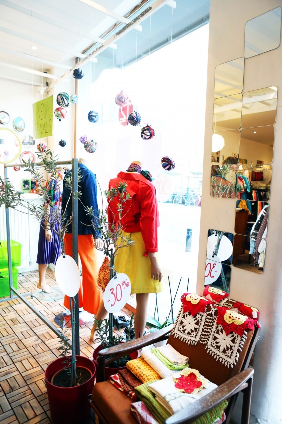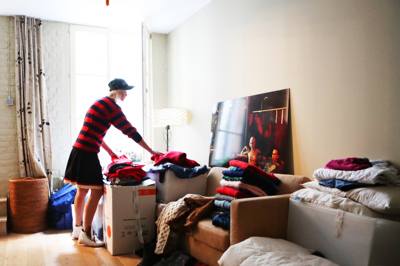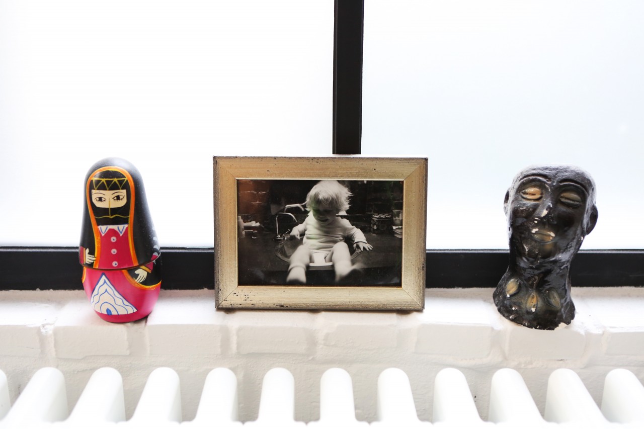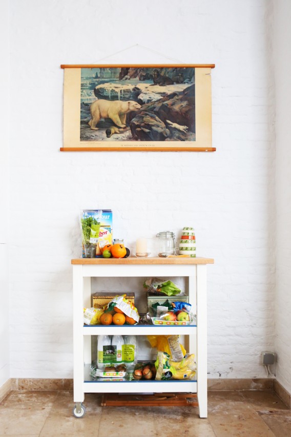 She hasn’t quite unpacked yet. The furniture in the living room looks settled and the cupboards in the kitchen are full but the bedroom is chaos, albeit organized. “I don’t know if I will find all my vintage,” she apologizes. “A lot of my clothes are still in boxes.” She tries the wardrobe first. The mechanism of the doors must have given way a long time ago – perhaps during the move – because they are held shut by a rather primordial yet effective sliding concoction. “I have to fix this,” she says as she swiftly drops the stick to the floor and we watch how the doors hinge forward. All in due time I’m sure. It’s only been a few months since Delfine sold her big house and found smaller, more appropriate quarters for a single girl. “Just when I moved in here, I got back with my ex-boyfriend and now it’s too small!” she laughs. “But it’s OK. We’re happy here.”