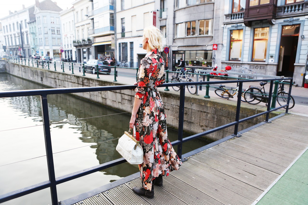 There is one other urgent matter to attend to. Our mutual friend Inge is throwing her 40th birthday party – the reason I am in Belgium until now – and we both need a costume. The theme is “Glam Rock”, which I interpret as David Bowie, in his glitter days, with stacked platform boots and colorful bell sleeve shirts. Confused and insecure, Delfine and I agree that we’ll be OK as long as we sparkle somehow. She takes me to her favorite vintage store across town, Think Twice to find the appropriate attire. She buys a floral gown “that will do”. But we don’t fare so well in the end. Everyone but us had opened the pdf with reference photos Inge had distributed and showed up in black and gold 80s outfits… We sparkled alright but in the wrong era…