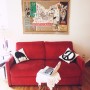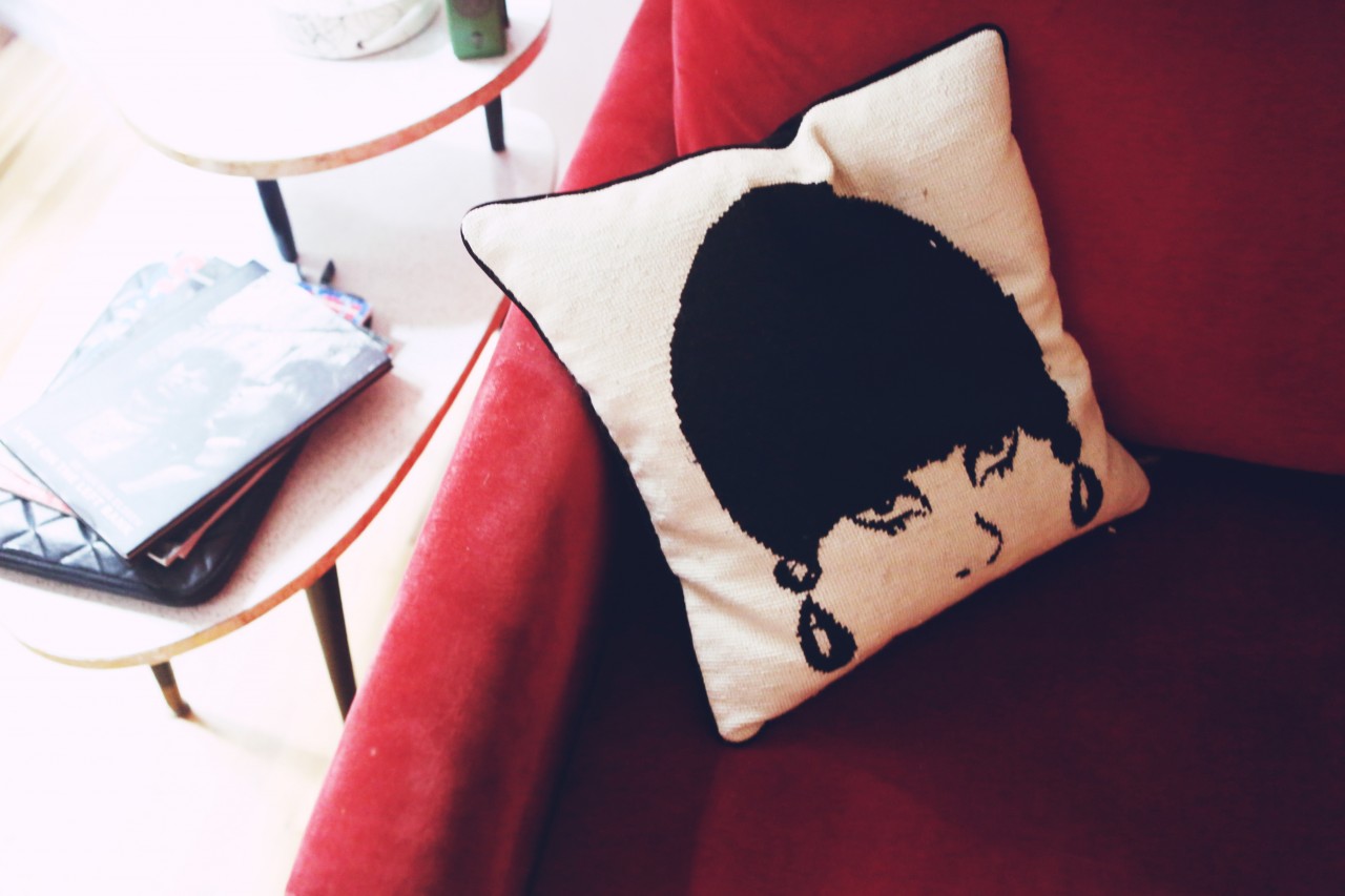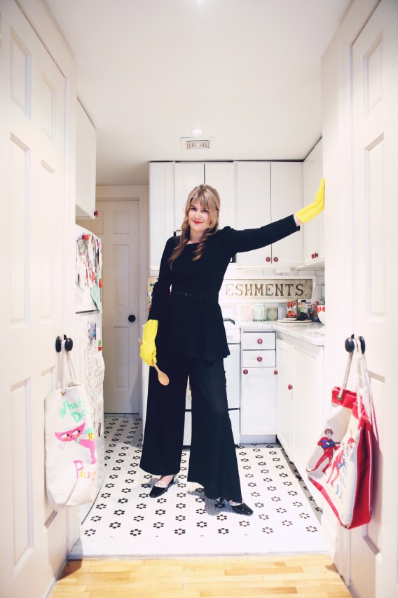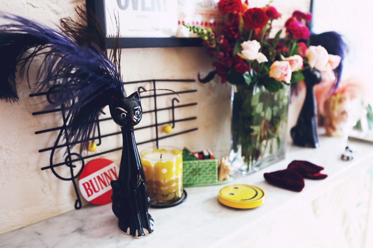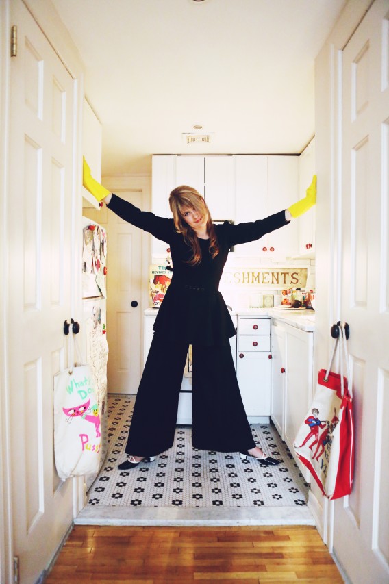 Tennessee Thomas’ apartment looks just as I’d imagined: cute, retro and little. It reminds me of the rabbit hole in Alice in Wonderland when everything seems to be shrinking, but really it’s just Alice growing bigger and bigger. Everything in the house, from the cups to the hangers to the rug is part of the same adorable theme and curiously enough in sync with its owner’s quirky voice, soft British accent and batting lashes. I’d call it ‘mod’ but Tennessee has a wilder imagination. “It feels like a little boat!” she smiles. She’s been living here for two years now and made it her very, very own. “I looked at seventeen places in one day during a blizzard!” she shivers – she moved here from Los Angeles. “When I saw this place it had great energy! An artist had lived here and all the walls were painted with insane murals of cats and grasshoppers in technicolors! But with the big windows it was bright, even though it’s tiny. I love my loft bed. It’s like a little cave! Or a tree house! I considered keeping the murals but decided that all my own stuff is already crazy enough. I didn’t need any more inherited wackiness!”