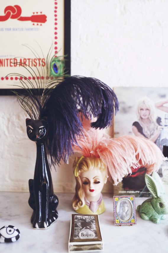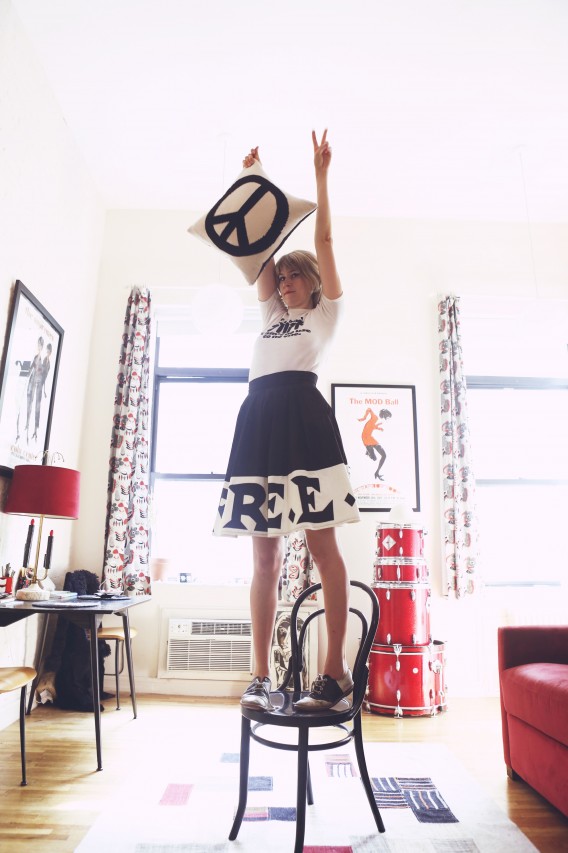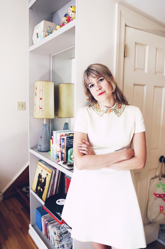 Tennessee is a colorful, happy girl with lingering teenage crushes and a serious 60s addiction. She collects Pony Tail record cases, 45-inch girl group and garage vinyl and loves all the Motown artists – “High water mark as far as songwriting, musicianship, performance & style is concerned! Everyone was inspiring each other which just made everyone better!”. Her favorite colors are pale pink and bright red. Her middle name is Bunny. And she describes her style as “Beatle-fan! 1965 screaming teenager!” She never wears heels – “too clumsy” – and swears by Peter Pan collars and dorky saddle shoes – “I wore that long before Moonrise Kingdom! Haha.” And not surprisingly she adores vintage. “I love the hunt!” she tells me. “Nothing better than finding a vintage treasure! It’s so exciting… The other day I found an incredible black & white cape and when the label said PARAPHERNALIA I nearly died! That was Betsey Johnson’s first clothing company in New York in the mid-60s! Edie Sedgwick was her fit model and she did all the costumes for Ciao Manhattan! These pieces should be in a museum! My mum was a BIBA girl…” So it’s clear Tennessee was born in the wrong era but she’s making up for it by creating her own little 60s world. For the two hours I spend at her little apartment I am her 60s teenager BFF and I, too, want to cry at a Rolling Stones concert.