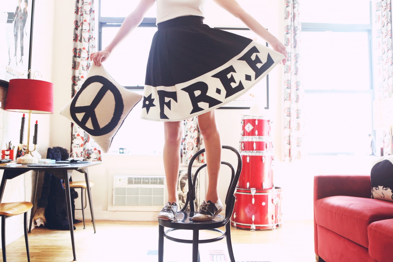 Twenty-eight year old Tennessee is a bit of a jack-of-all-trades these days but her first love is always music. She wanted to be in a band when she was growing up, and did just that. She formed ‘The like” with a few girlfriends from high school and toured the world for ten years. “When we were eighteen, just after graduation, we signed a record deal and made an album,” she recalls. “An incredible dream! We were very lucky girls!” They made subsequent albums, kept touring and then, sadly, broke up which left Tennessee heartbroken and a fugitive. “We’d been doing it for ten years and we were holding each other back in a lot of ways… We needed to go off and do our own thing; we were very co-dependent! I hope at some point we will reunite…” When she settled in New York she got regular DJ gigs (she plays “only 60s soul, girl groups, freakbeat, British Invasion, psych, French yé yé girls!”), did a bunch of fun fashion collaborations with friends like Leith Clark of Lula Magazine, Gia Coppola and Alexa Chung and started The Awareness Experiment with her friends Sarah Sophie Flicker and Maximilla Lukacs. “We make mini-documentaries to raise awareness about critical issues”, like fracking, women’s health rights, the rain forest etc. “Our directing team is called The Department of Peace,” she says proudly.