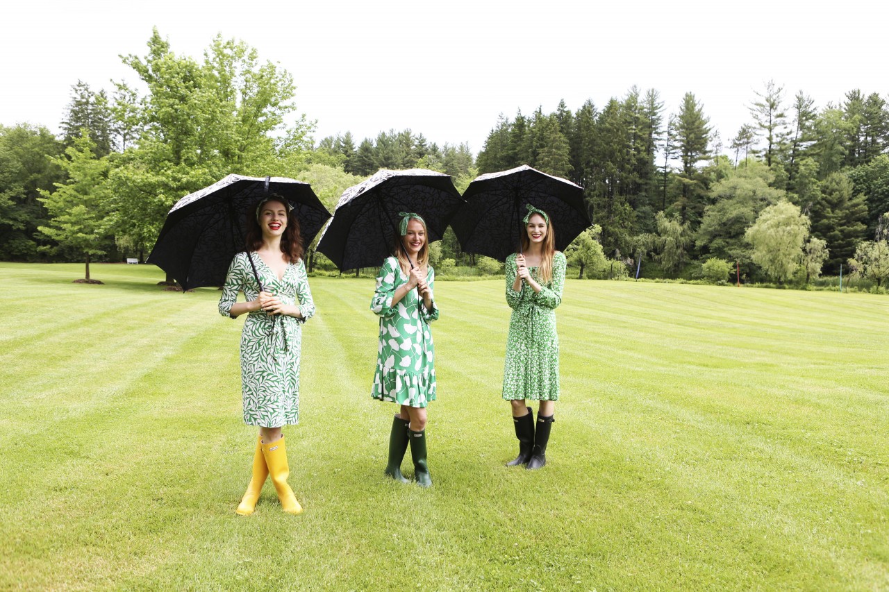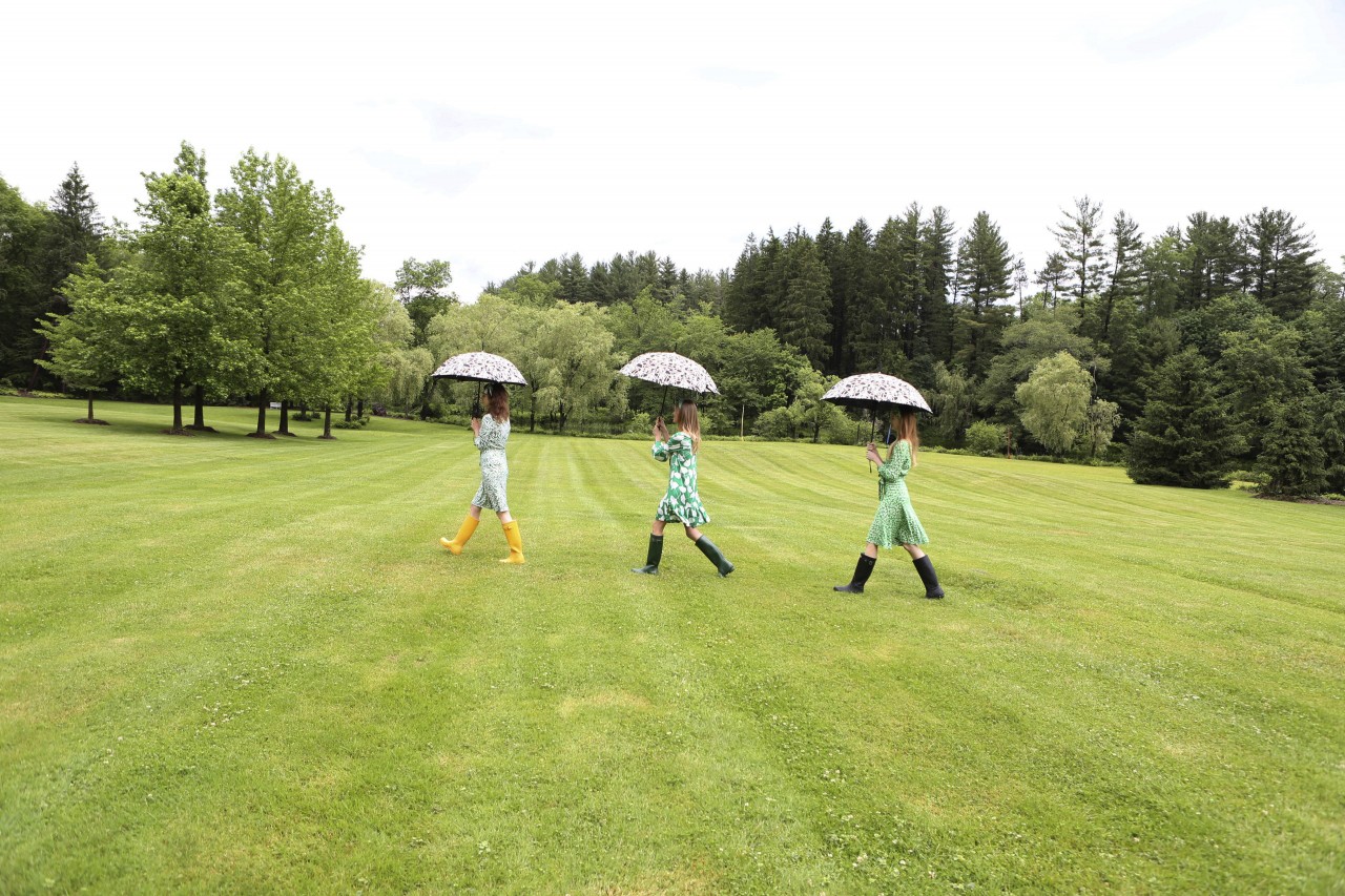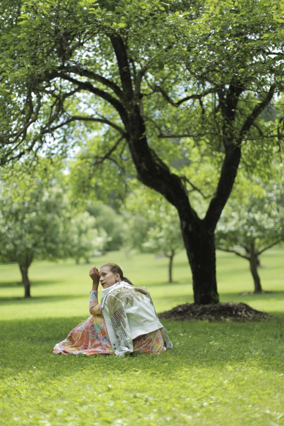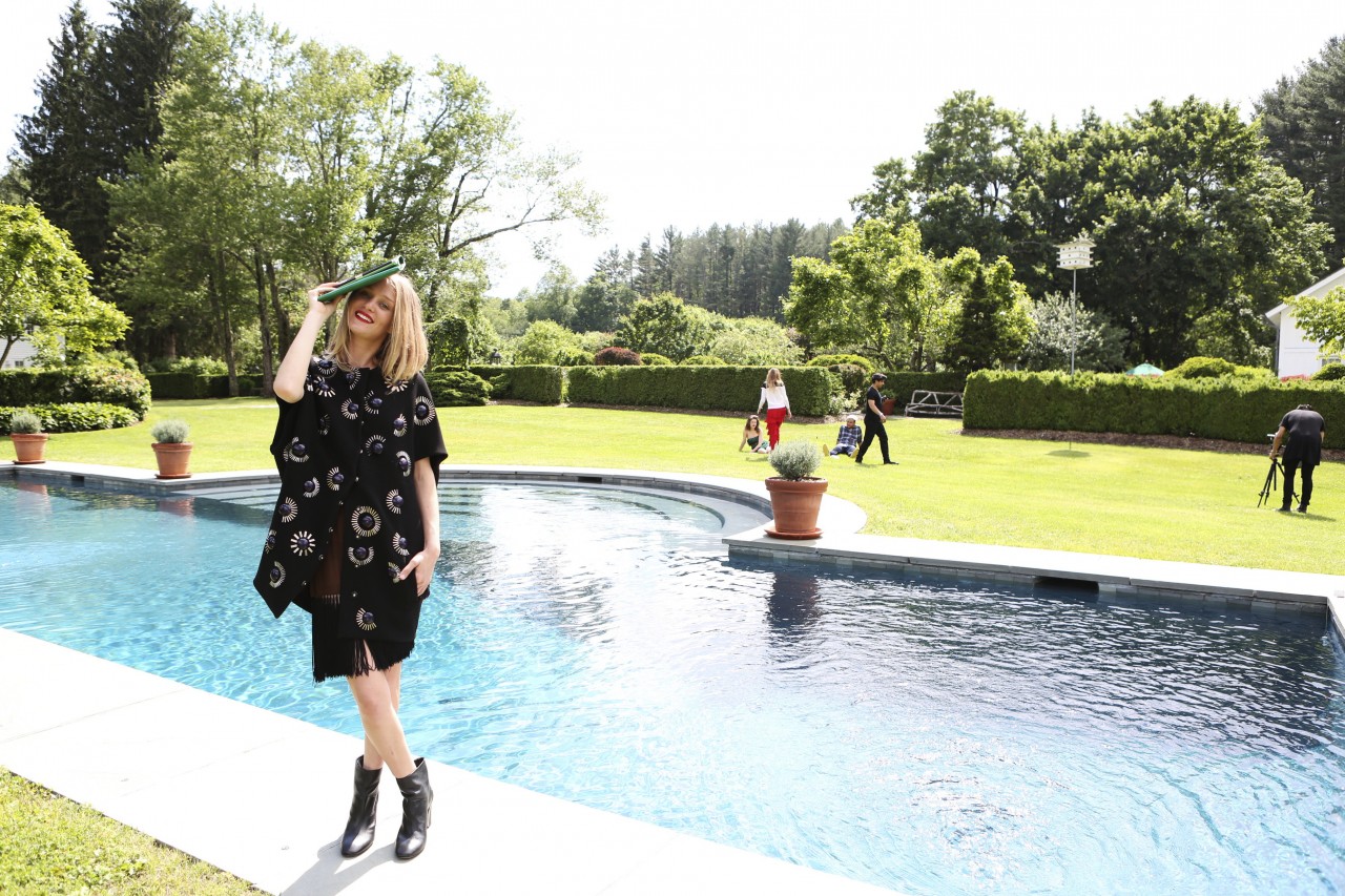 The afternoon flies by. What we thought would last two hours turns into a six-hour production. “You must have lunch!” insists Diane after a few frenzied dress changes and summons my team to the poolside terrace. But as soon as our stomachs are stocked we fly off again to conduct Diane’s on-camera interview by the giant Buddha statue. She changed into a pair of black leggings, an oversized DVF sweater and rubber rain boots – none of us poor mignons anticipated the swampy, muddy grass by the lake and get splattered. No vintage? She replies matter-of-factly: “I don’t need to wear vintage. I AM vintage.” By four PM, when we’re just about to finish the last shot, we feel the first drops of rain, as if saved by the bell. I could have gone on for hours, probably until Diane would have insisted we “Stay for dinner!!”….