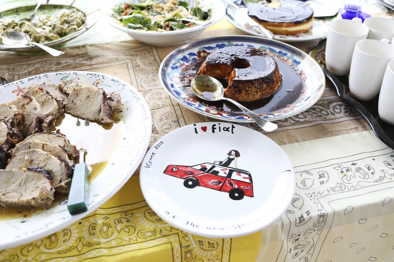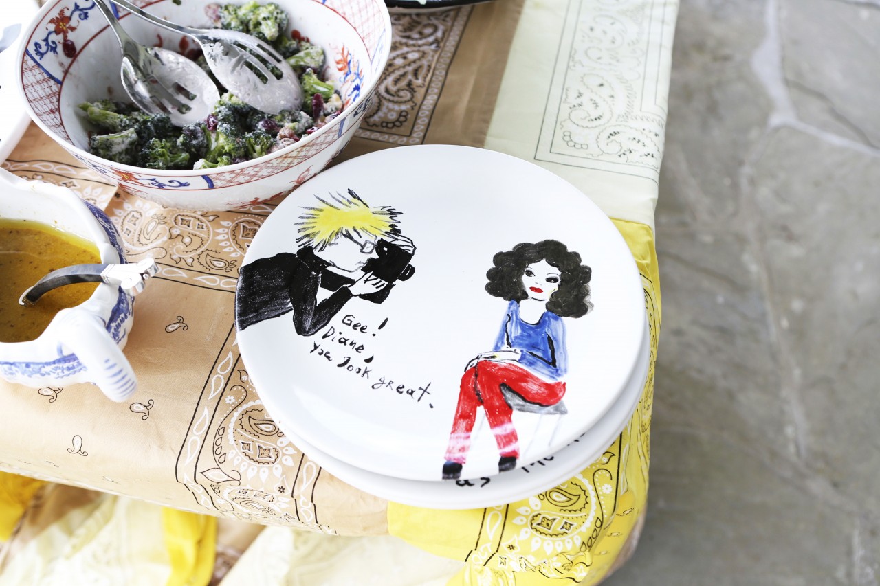 “Please, please, come have some breakfast,” beckons Diane when we finally meet her by the parking spot. She almost sounds worried, like an overbearing mother who wants to make sure her flock is fed properly. She’s dressed in a long, white, cotton nightgown, no make-up, hair down but not visibly affected by sleep in any way, and barefoot. And even in such simple attire she’s imposing and gorgeous. About 5 foot 8 and athletic she’s just as beautiful as in the hundreds of photos I’ve seen of her, at studio 54 or at work in her atelier in the 70s or more recently at her Fashion Week dinner at Indochine. She’s at ease and generously welcoming.