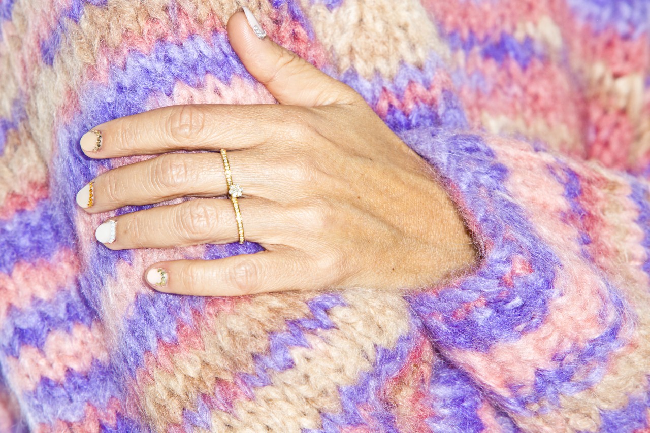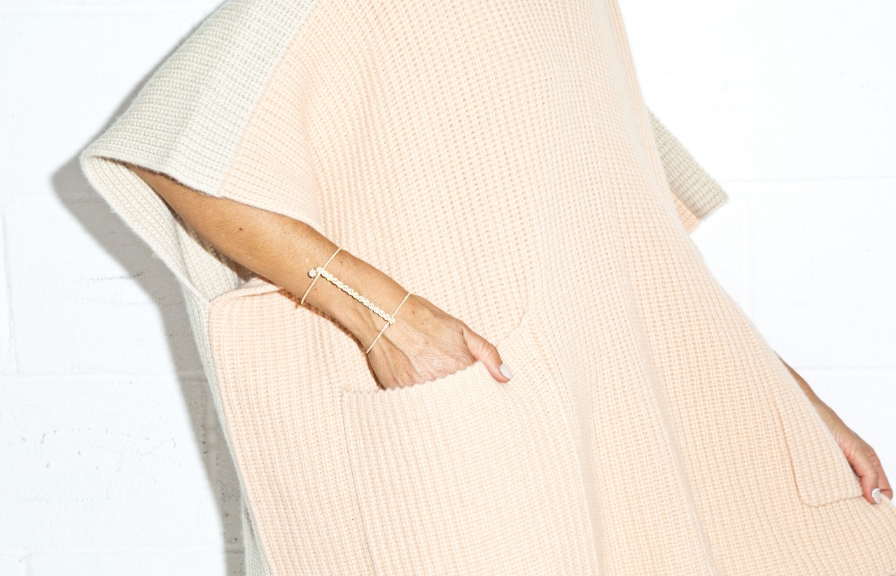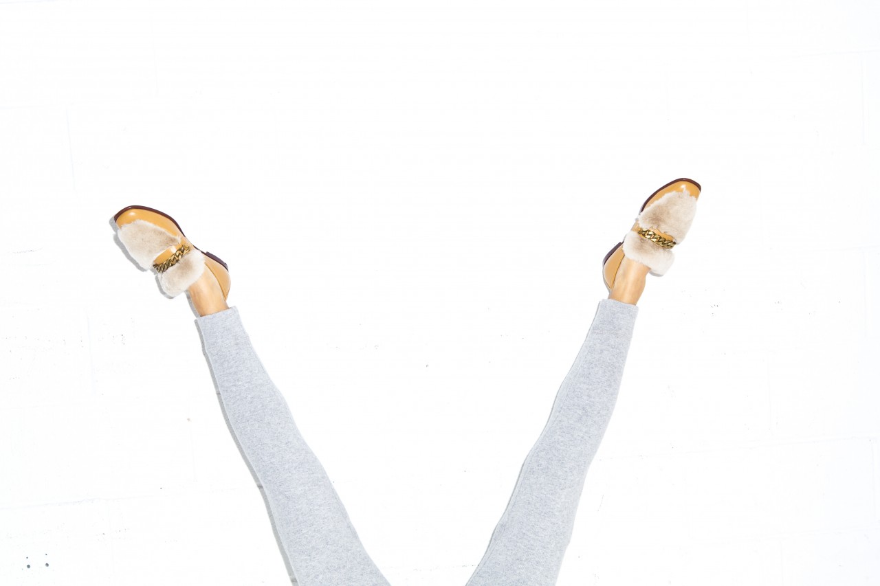 All jewelry by Hueb; Two-tone tunic sweater by Chloe; Piuma cashmere cardigan by Blake London; Peach angora-blend crop cardigan and short-sleeve sweater by Michael Kors; Multi-color wool and mohair sweater by Michael Kors; Oversized cowl neck knit sweater by Michael Kors; Grey knit leggings by Demy Lee; Tan loafers by Boyy, exclusively on sale at the Boyy Boutiques, or use the code “Tales of Endearment” when you order with Jesse@boyybag.com. They fit size-accurate.)