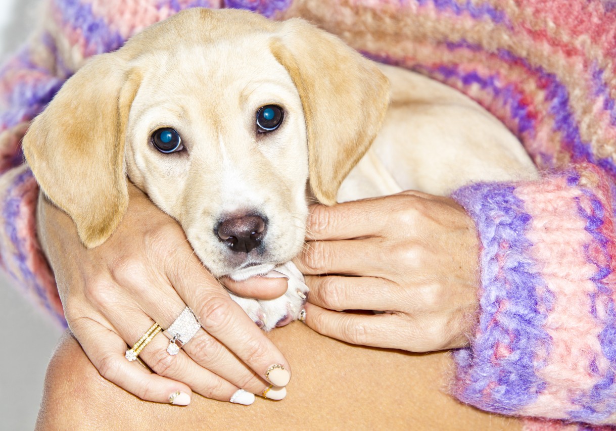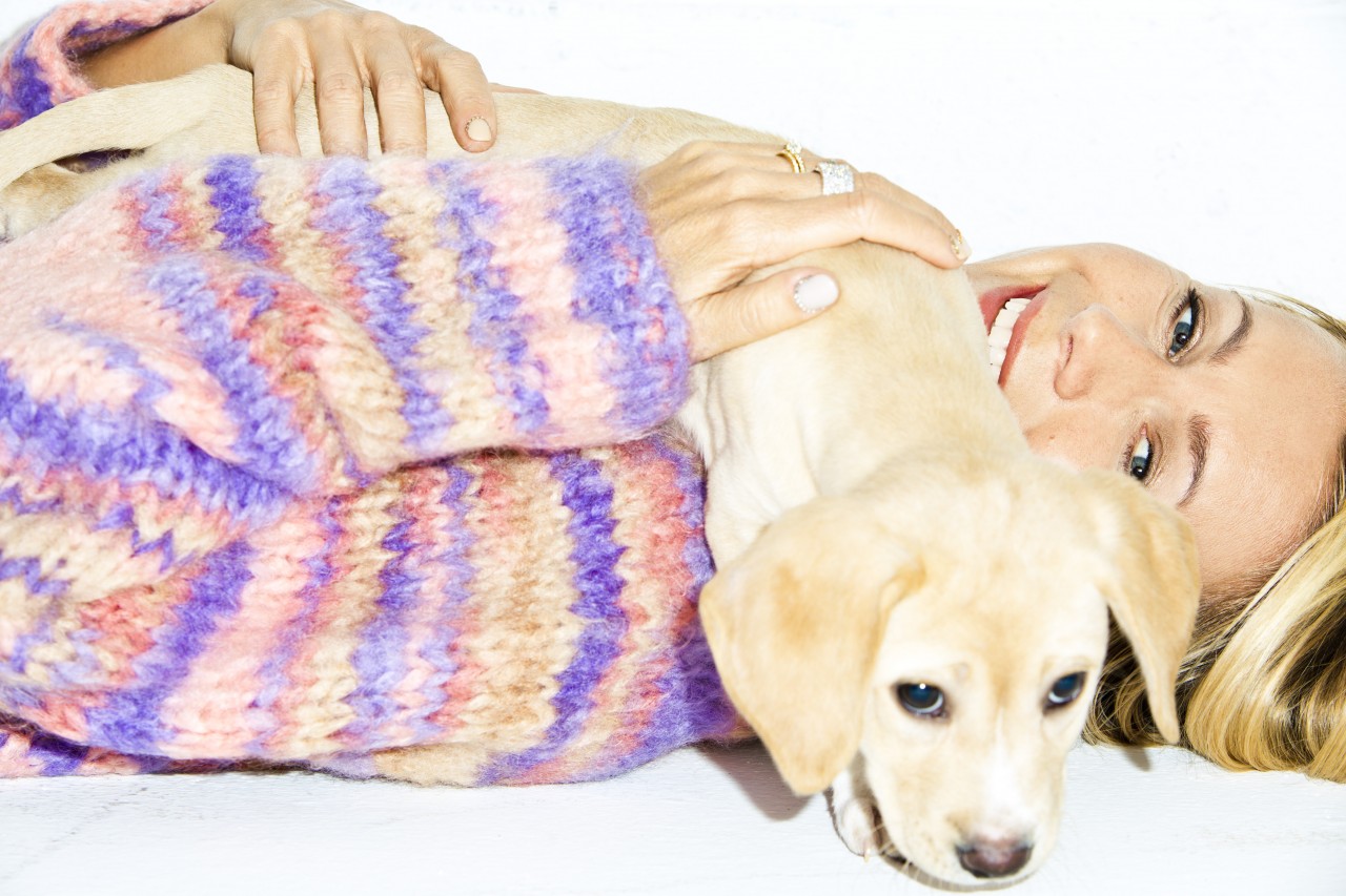 Just kidding… (Not about my birthday – it is today!) But the adorable 10-week old mongrel named Rosebud is not mine. She was rescued from a kill shelter in Georgia by In Our Hands Rescue and just in the nick of time entrusted with the happy family of Kirstin Bailey, EVP of Interior Design at the Ian Schrager Company. (She designed the new Edition hotel in Miami for example, where I stayed during Art Basel.) Clearly, Rosebud was meant for bigger and better things… Like modeling my birthday gifts from Hueb!