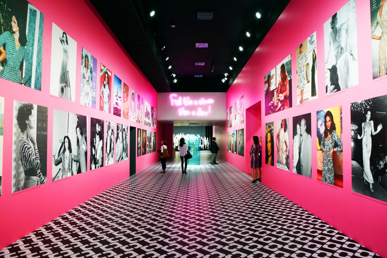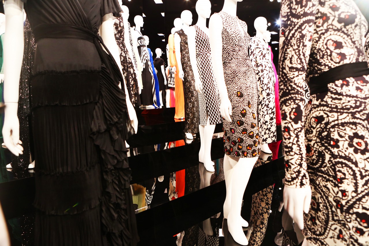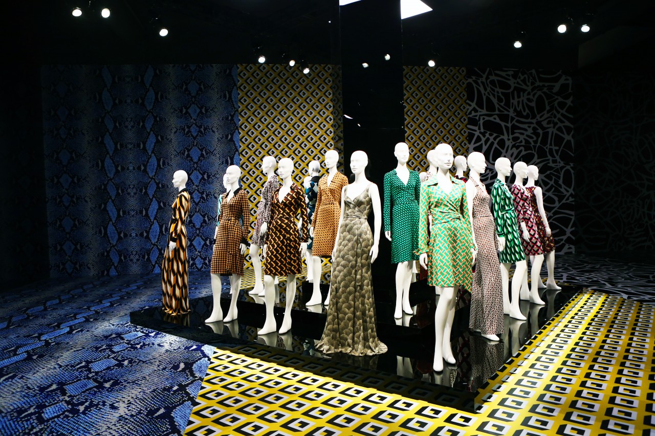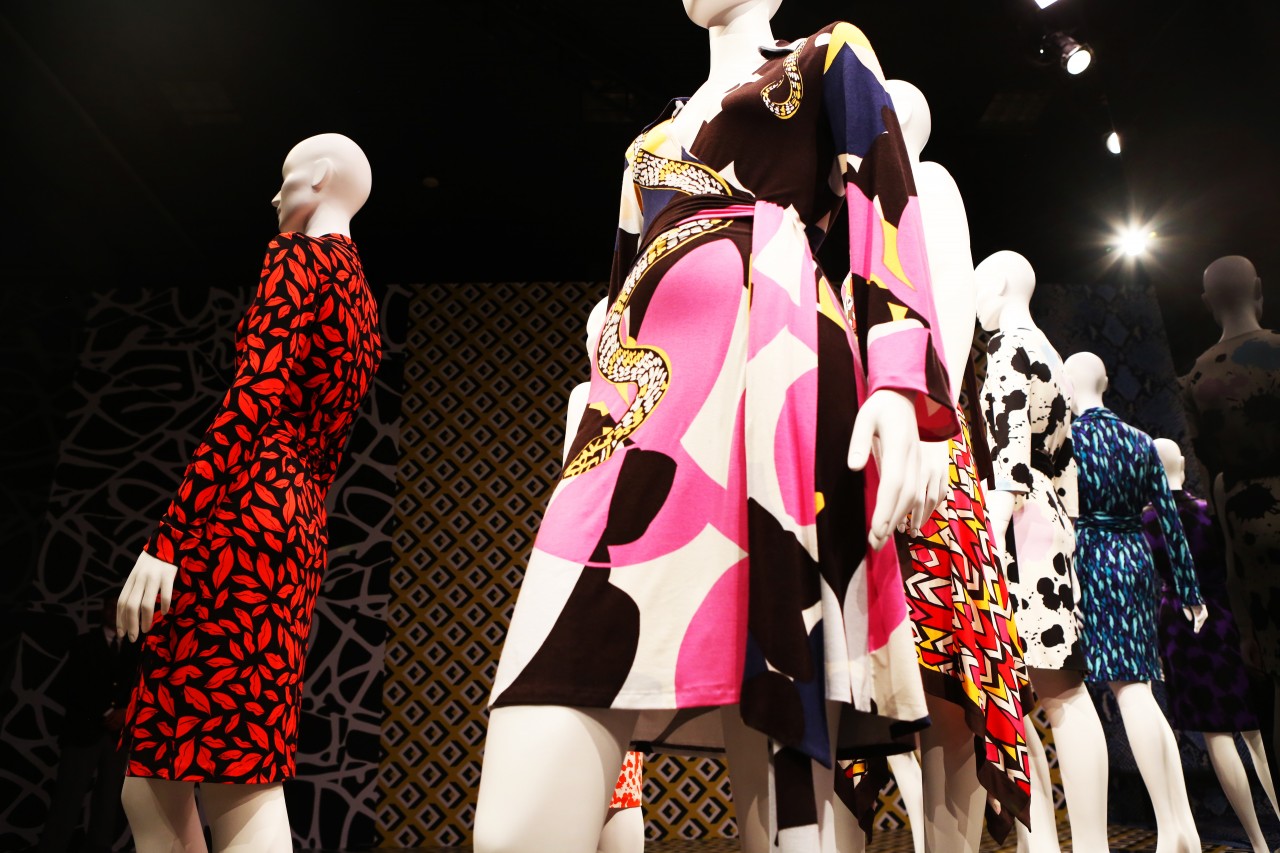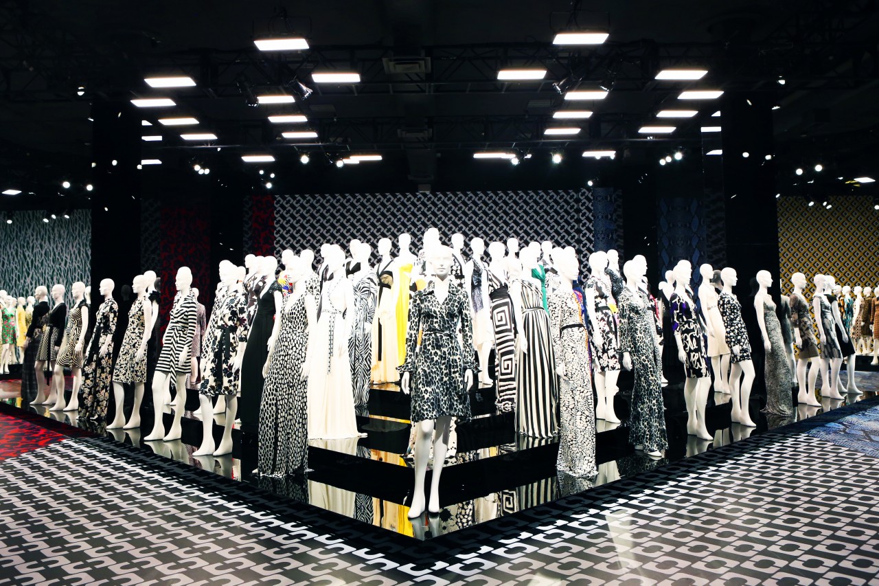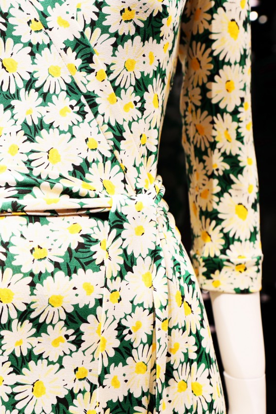 I was invited to the opening night of the anniversary exhibition at LACMA on January 9th in Los Angeles. It was spectacular. Not only because just about everyone in Hollywood had gathered to bestow their congratulatory wishes upon Diane in person, but also because of the scale of the exhibit itself. Two hundred mannequins in vintage and new colorful wrap dresses were set up in a giant space, covered from top to bottom in extra-enlarged DFV prints. The entry way was plastered with fashion magazine clippings of Diane and models wearing her dresses. And an annex room showed all of Diane’s artwork and photographs. I had to go back the next day to take it all in again, without any of the nightly distractions and came home with one almighty epiphany: I was also born in 1974! But the most important message I took with me, and hopefully every likeminded woman that visited, is the exhibition’s tag line, and one of Diane’s many inspiring motto’s: “Feel like a Woman, Wear a Dress.” Congratulations Diane! You are every woman.