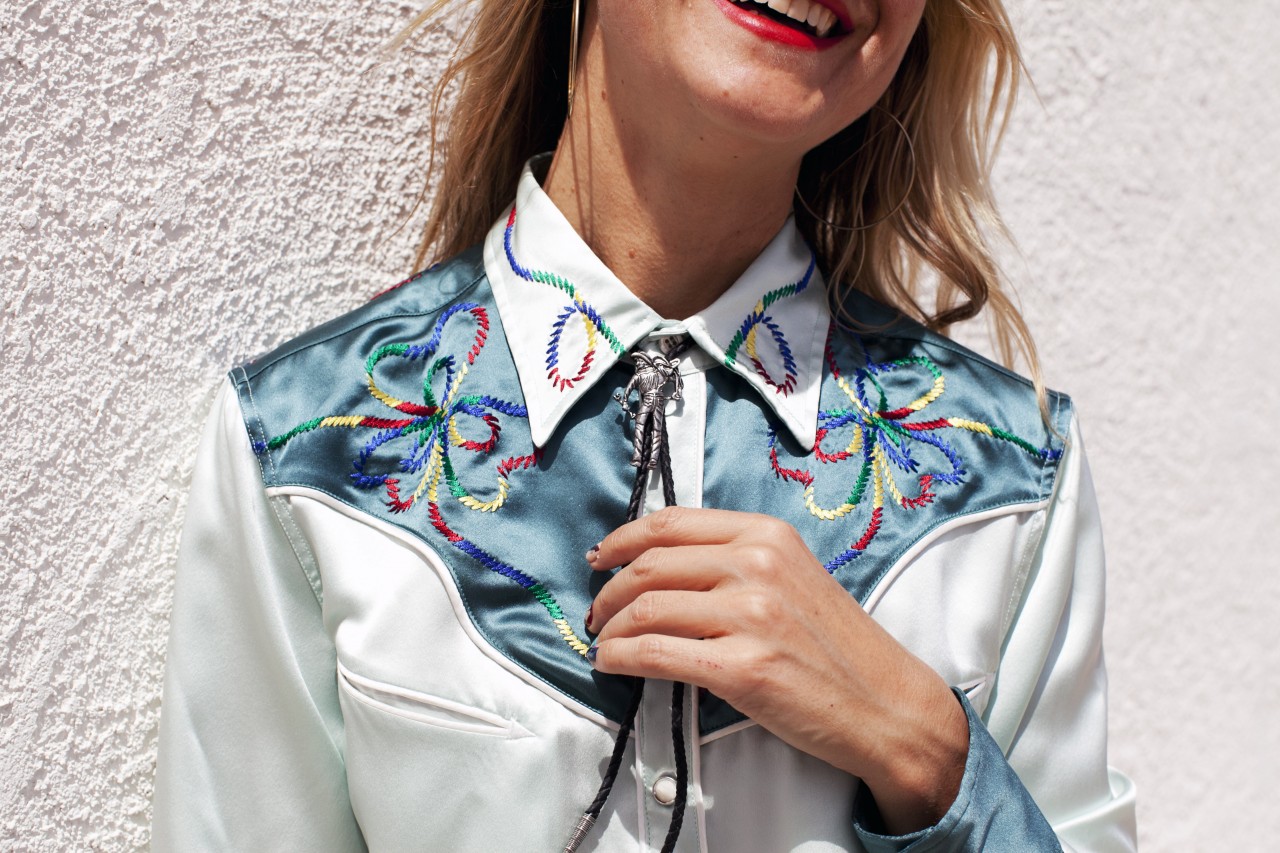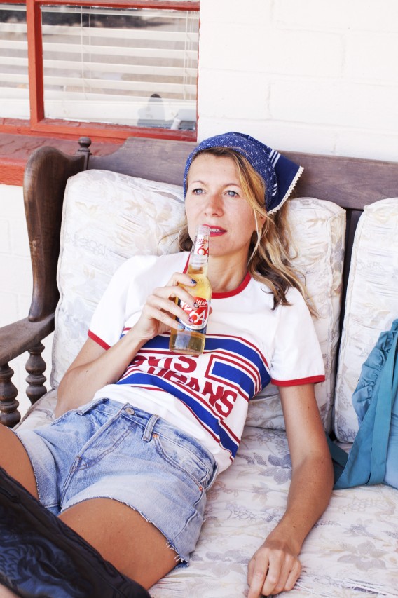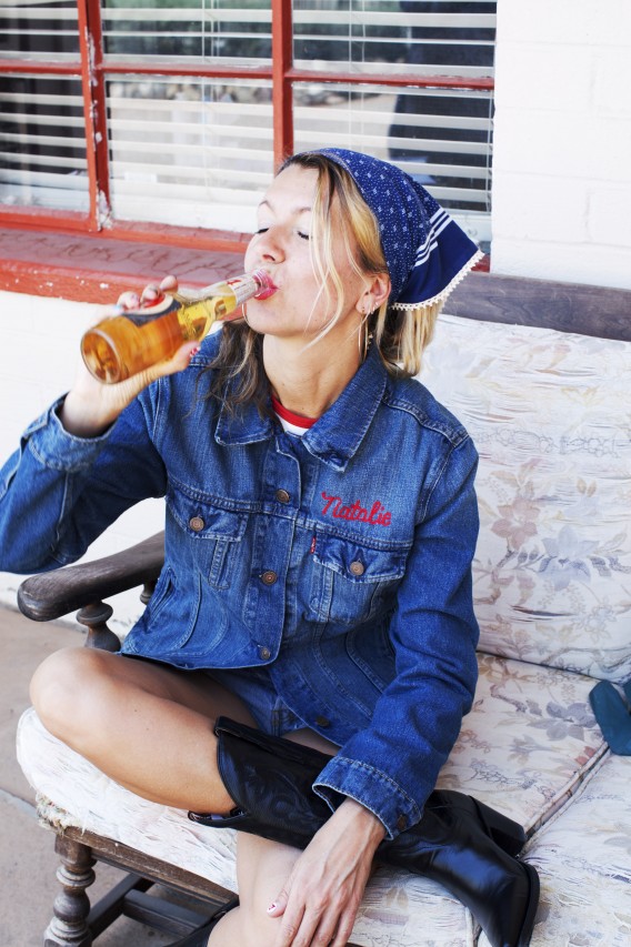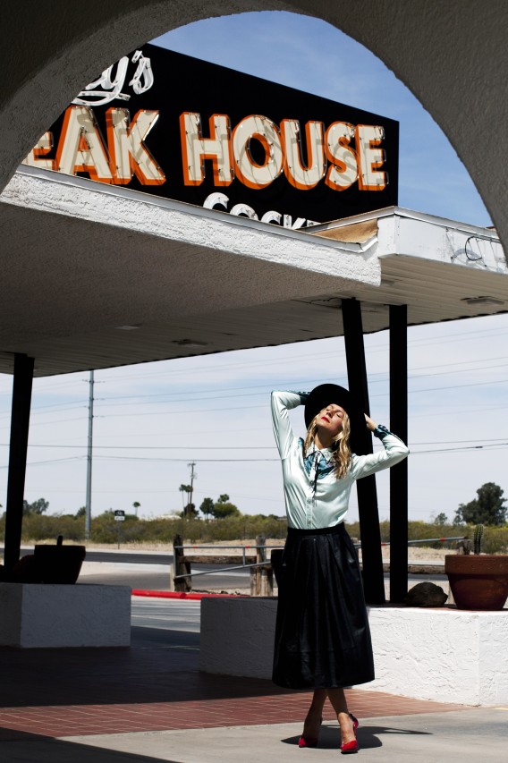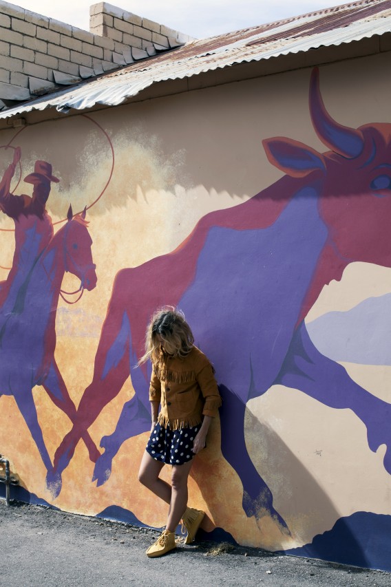 And so the 701 turned eighty this year. And Levi’s celebrated. They invited a group of international editors to the Rancho de los Caballeros in Wickenburg, a rancher’s hot spot fifty miles North of Phoenix, in the High Sonoran Desert of Arizona. That was back in May, the same week I was in Kazakhstan. In fact I was only in Phoenix for two days, before the real fun started and the fashion dudines got to ride on tractors, sing folksy tunes by the camp fire and learned how to line dance. I don’t have any pictures to commemorate their farming exploits – Jean Herman Bishop does! – but as a personal tribute, I borrowed some of Levi’s vintage and fall fashions and trekked around town with a photographer.