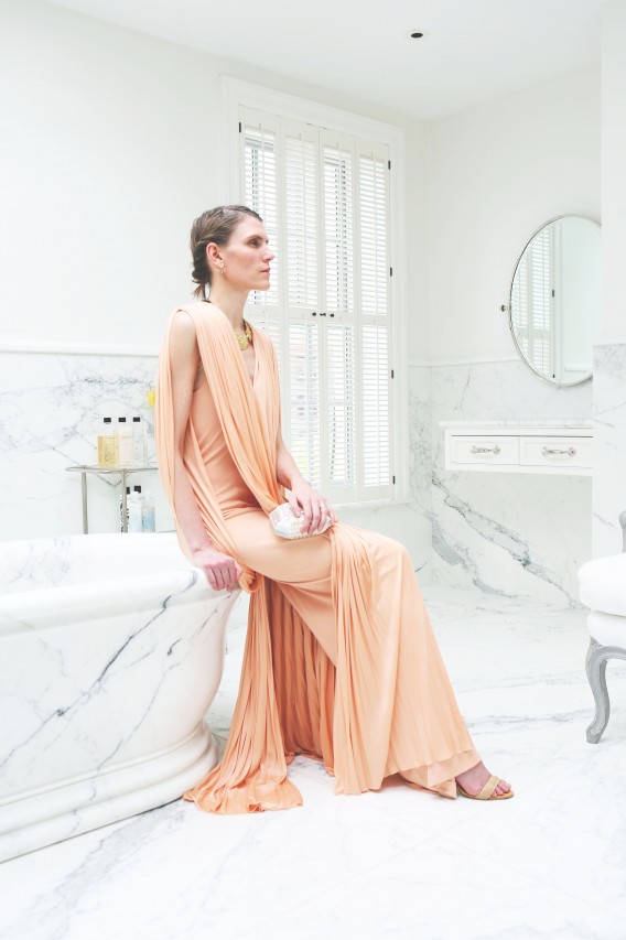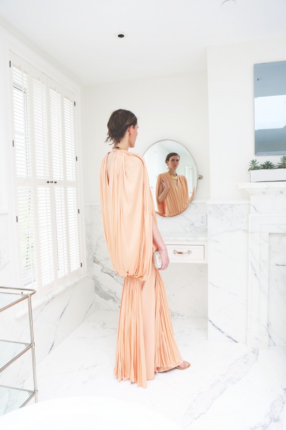 However, as much as I’d love to discuss soccer, I am here to delve into Gabi’s closet, which is all kinds of special. Not only does it store every beautiful frock from her own collection, it’s also been entrusted with quite a few of her mother-in-law’s famous pieces. Before she became Mrs. William Randolph Hearst Jr., Austine was married to Igor Cassini, fashion designer Oleg‘s younger brother. For most of her working career she was a syndicated newspaper columnist. But at the start she was deep in the world of fashion. “She used to be a model,” recounts Gabi. “She saved all the scraps with her pictures from Vogue and Harper’s. She was a muse to Charles James; then she became a patron. Her wedding dress to Austin’s father was made by Charles James, as well as the clover and butterfly dress that where both very prominent in the recent exhibition [at the Met]. She was constantly in the Best Dressed List – this was the times of the Duchess of Windsor and Babe Paley. What I found so wonderful about her style is how she could be ultra glamour and then an avid horse woman. From what my husband told me she was the happiest in the farm with the horses. My mother and sister are the same (not dressed in Charles James!) but yes, the happiest in the country riding.”