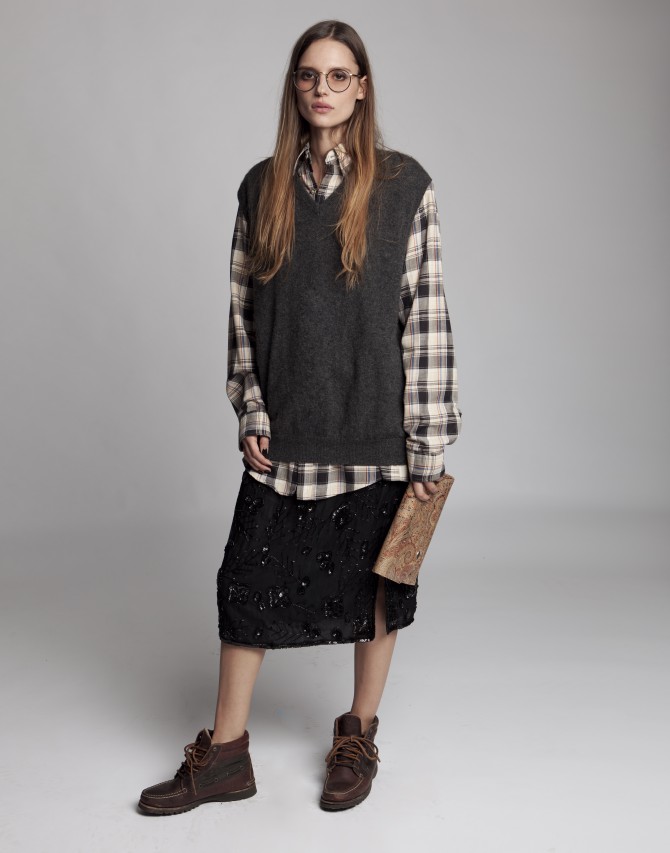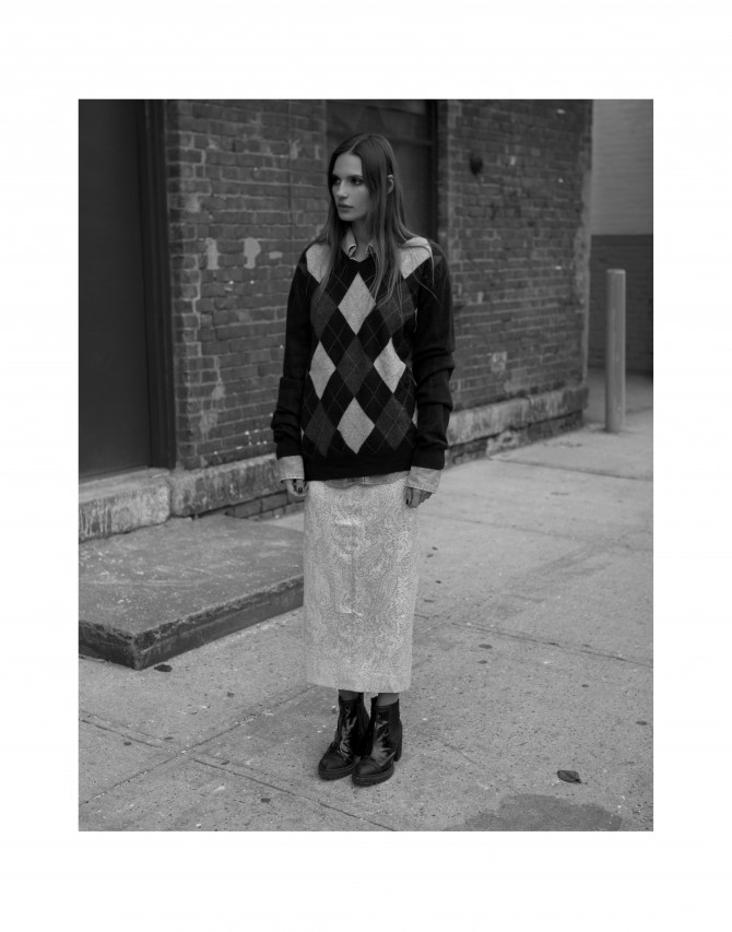 One such exercise was presented to me by Topper Luciani at Nifty Thrifty. He owns a giant warehouse in Greenpoint that’s stacked to the rafters in thrift. Truckloads of crumpled clothes arrive at his office on a daily basis and get sifted, dry cleaned, steamed and photographed by his army of assistants. It’s a crazy business operation, but it runs like an engine. Topper asked me to curate a sale based on my interpretation of the season’s hot picks. Because Fall/Winter is all about comfort and a stress-free boyzone I picked out my favorite cashmere and wool options and put a few looks together.