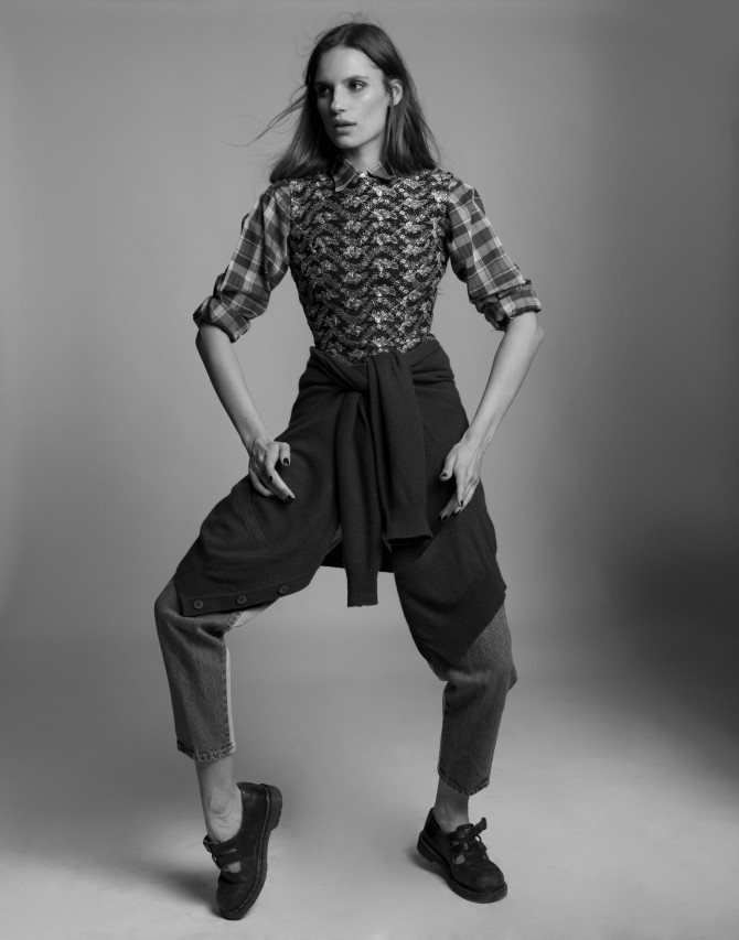 I recruited 23-year old Ukranian model/photographer Cate Underwood from New York Models as my muse for this gig. Cate is not only stylish, cool and fun, she’s also well on her way to become a bit of a staple herself. Unlike most girls who try to find a career after modeling, Cate’s career path took a reverse turn. She was discovered at twenty while she was shooting model tests for agencies. She had already won a Bazaar Fashion Forward Award at 19-years old, was the youngest photographer to ever shoot a cover for Officiel and got hired by Elle and finally Vogue Ukraine. This fashion week she’s a contributing editor for V magazine, so watch her chronicles of all the parties and backstage action!