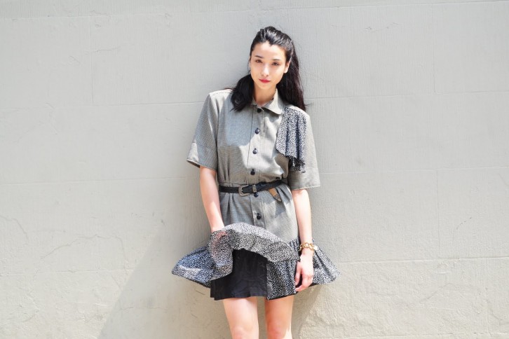 Tsumori Chisato silk multi-colored, tiered, ruffle top, vintage 1970’s Ungaro silk multi-colored, striped palazzo pants (at Pinkclouds), vintage 1970’s Balenciaga sunglasses, Prada sandals, vintage 1980’s snake skin purse. Photos by Aram Bedrossian