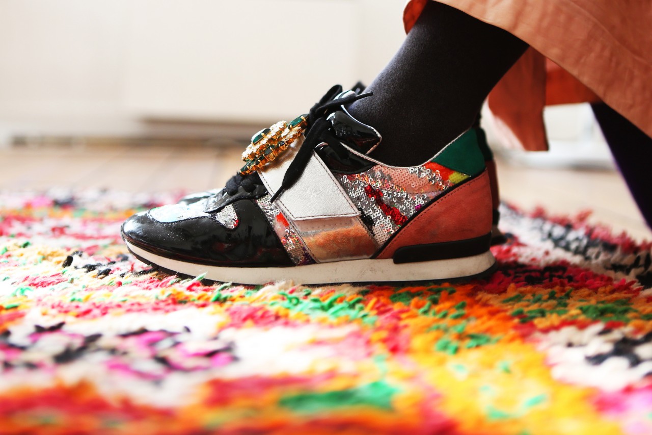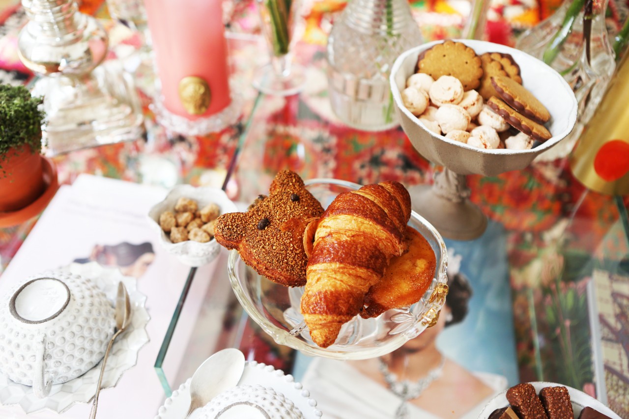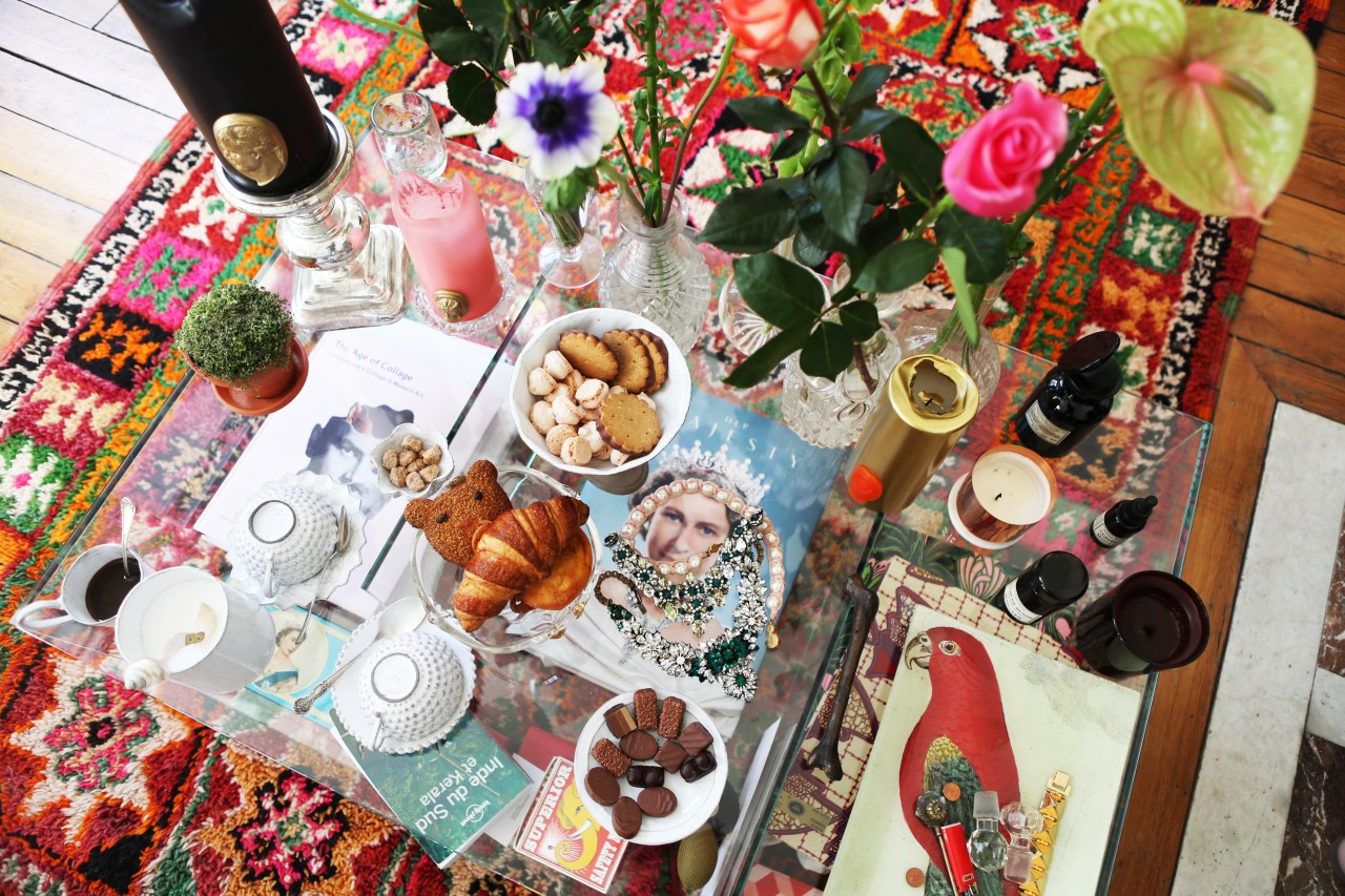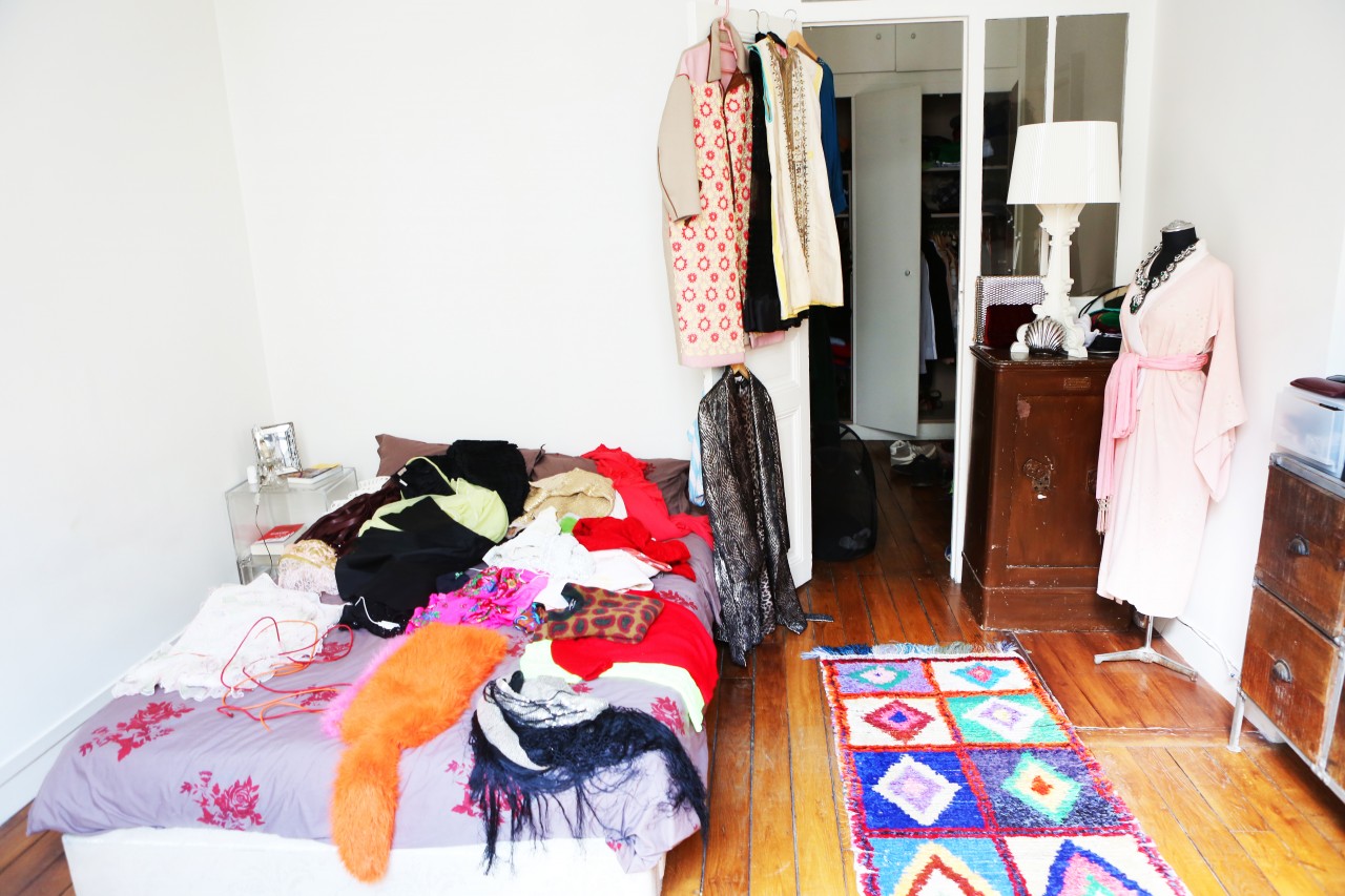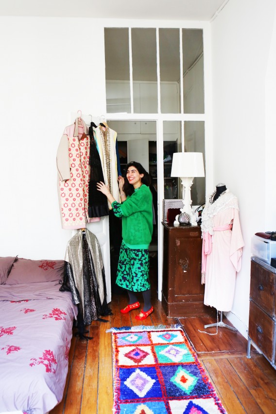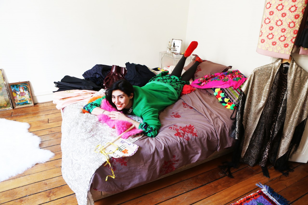 But no such derogatory thoughts are obscuring my merry mood today because Shourouk’s terrace is perfect. Besides a white awning, there is no escape from the sunlight and it’s a welcome privilege. Inside, the coffee table is set with all kinds of beautiful delights: fresh croissants, bear-shaped cookies, chocolate fondant pralines, fruity candles and pastel colored flowers in many, many vases. “Would you like some coffee?” she asks me. It’s a funny question because it turns out they don’t actually have any coffee, nor a coffee machine. “We will run and get some from downstairs!” her boyfriend apologizes. But I happily decline. One look at Shourouk’s colorful, sparkly interior is enough caffeine to last me until the summer. Nevermind her closet, which brims with all kinds of neon, furry, sequined and embroidered marvels. I’m good.