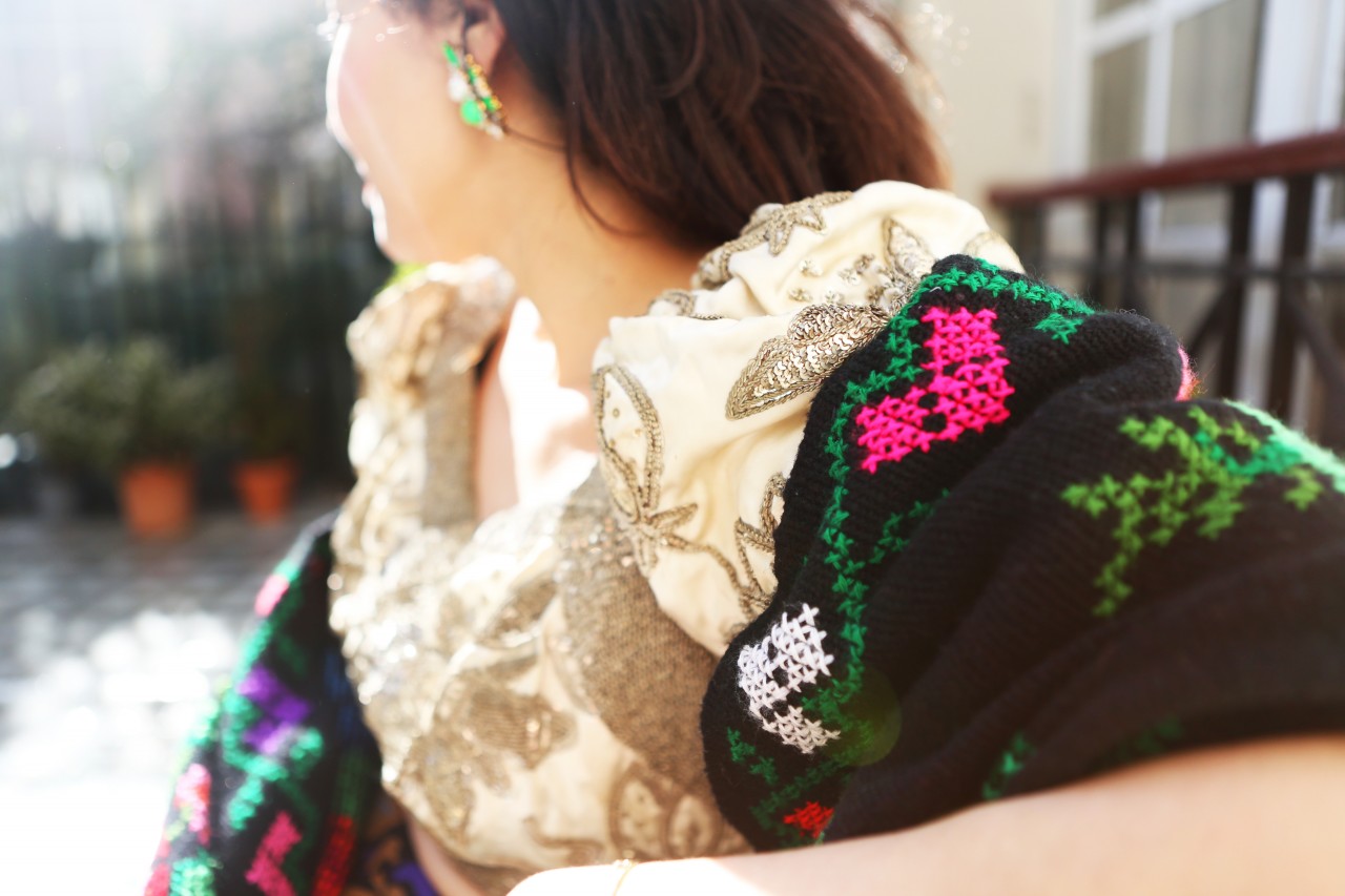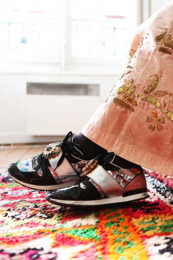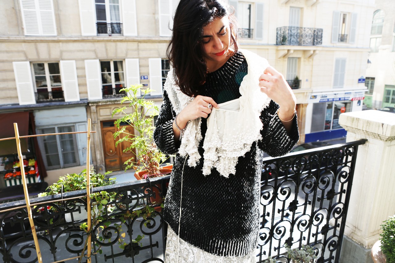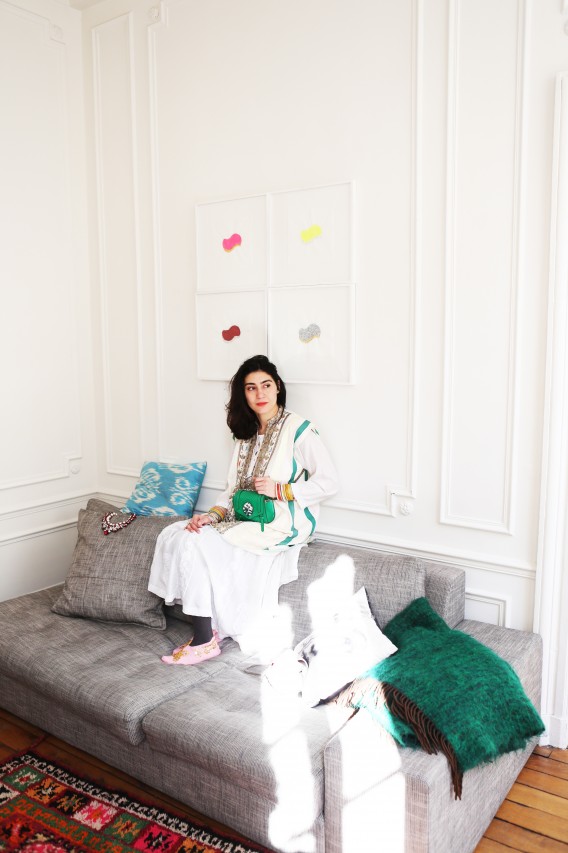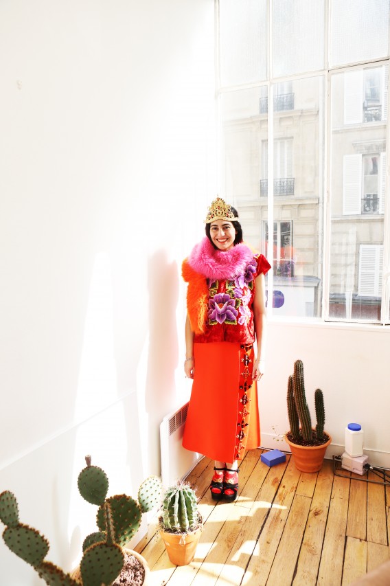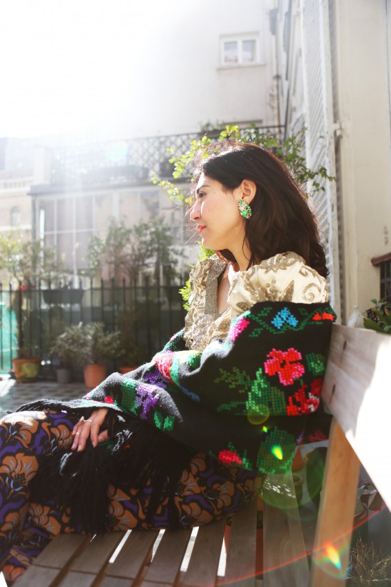 I suppose opposites attract, because Shourouk strikes me as a quiet, private woman. She speaks softly, smiles shyly and delivers her words carefully. Everything about her creative expressions as a jewelry designer, her natural attraction to urban chaos and her colorful outwardly appearance suggests the contrary, but that’s what makes an artist relevant and interesting. “I love cities that are constantly in motion,” she explains. “I can swim on their waves and have a non-stress attitude when everything is fast and choking.” Perhaps it’s her education at Studio Berçot, or her training at fashion houses like Galliano and Cavalli, or simply upbringing. “Tunisian women like razzle-dazzle jewelry and exaggerated outfits for big occasions,” she continues. “I’m sure that my roots influenced the way that I think and create my designs. Being a native from Nabeul, a city famous for its embroidery, I’ve learned the specific art and techniques from my grandmother. I love everything chunky and shiny and full of detail.” I could have lasted a few more hours thriving on the thrills of Shourouk’s technicolor high, but the woes of Fashion Week summon me. I leave her house with renewed energy and a promise to keep the spring in my step until, well… Spring.