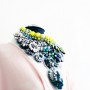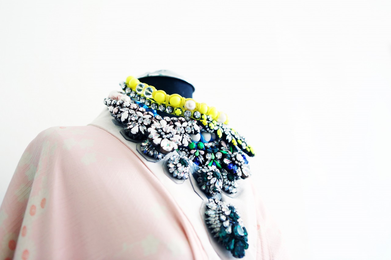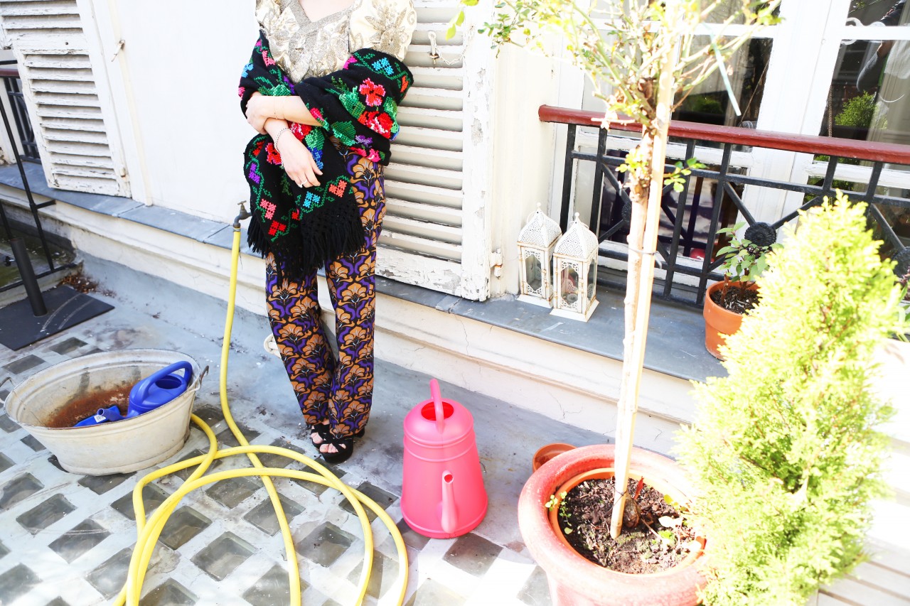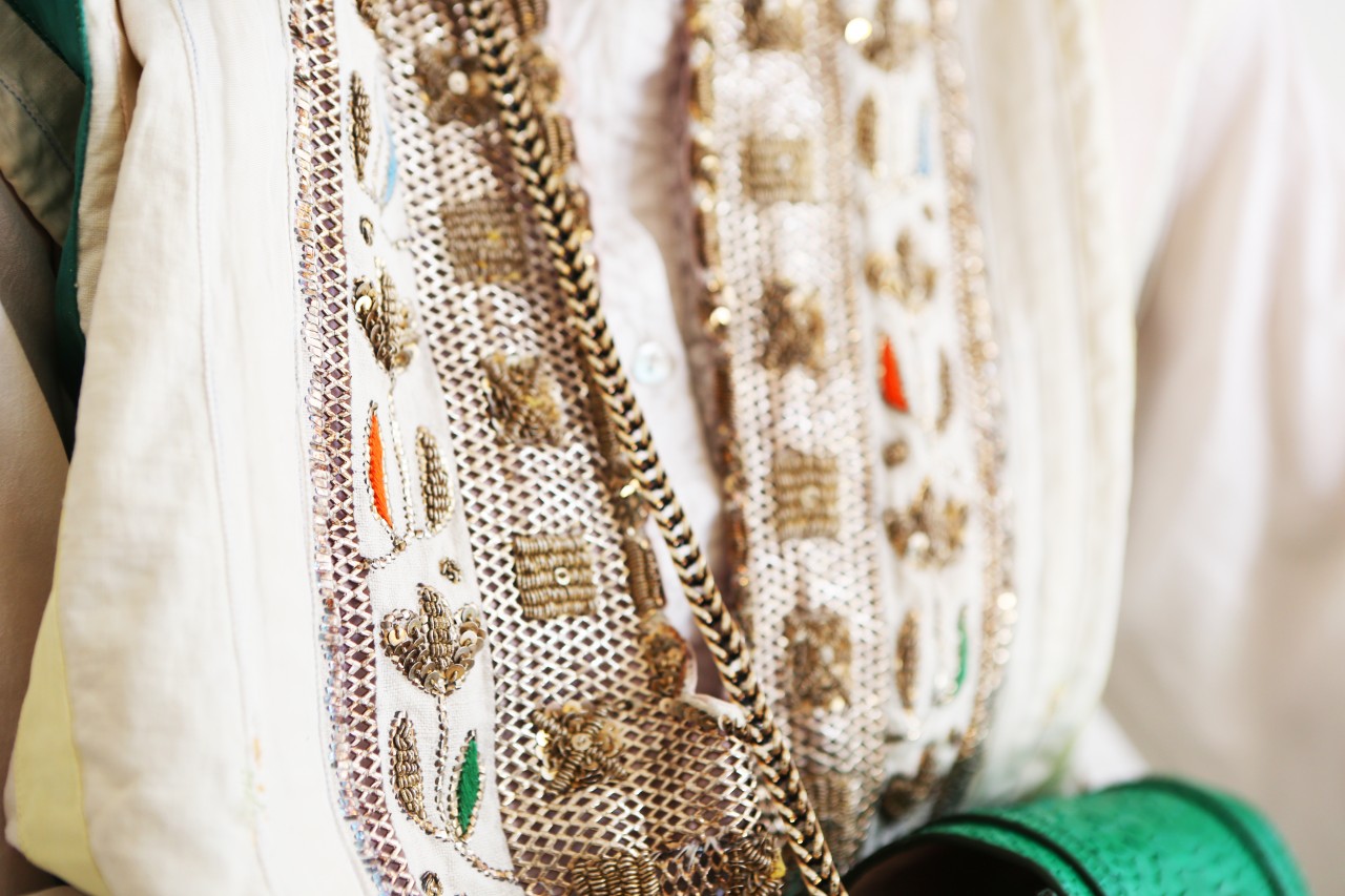 I suppose opposites attract, because Shourouk strikes me as a quiet, private woman. She speaks softly, smiles shyly and delivers her words carefully. Everything about her creative expressions as a jewelry designer, her natural attraction to urban chaos and her colorful outwardly appearance suggests the contrary, but that’s what makes an artist relevant and interesting. “I love cities that are constantly in motion,” she explains. “I can swim on their waves and have a non-stress attitude when everything is fast and choking.” Perhaps it’s her education at Studio Berçot, or her training at fashion houses like Galliano and Cavalli, or simply upbringing. “Tunisian women like razzle-dazzle jewelry and exaggerated outfits for big occasions,” she continues. “I’m sure that my roots influenced the way that I think and create my designs. Being a native from Nabeul, a city famous for its embroidery, I’ve learned the specific art and techniques from my grandmother. I love everything chunky and shiny and full of detail.” I could have lasted a few more hours thriving on the thrills of Shourouk’s technicolor high, but the woes of Fashion Week summon me. I leave her house with renewed energy and a promise to keep the spring in my step until, well… Spring.