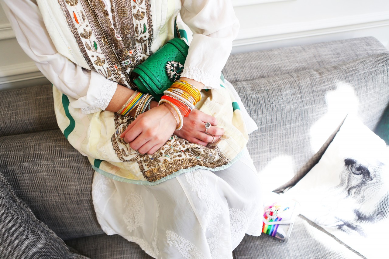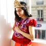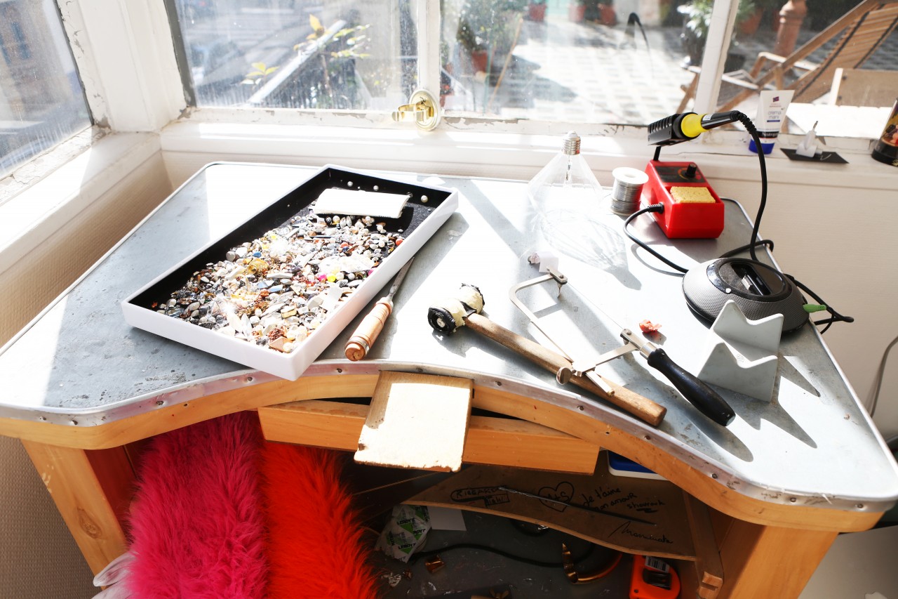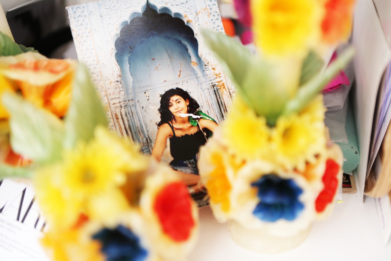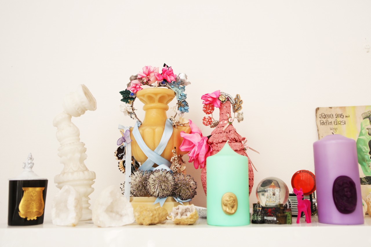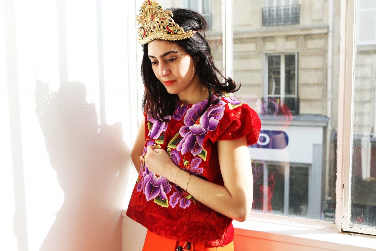 Shourouk Rhaiem’s life revolves around jewelry and foreign travels. The driving force and inspiration behind her eponymous brand is lyrical and culturally nostalgic. “I am spontaneously inspired when I travel,” she tells me. “I can find it in an object, an image or even a foreign dish! I always bring back souvenirs, fabrics or candles from my trips and then I work with my team to illustrate the new colours, shapes or materials we want in the new collection.” She shows me beautiful embellished wedding skirts from Tunisia, her country of origin, decorated skulls from Mexico, the home of her icon Frida Khalo, and vintage headpieces from the flea market in Paris, her favorite haunt. But her heart and soul are forever and ever pawned to India. “India is an inexhaustible source of inspiration!” she finds. “This country has always been really special to me and I try to go there every year. It’s a place I dreamed about watching Bollywood movies as a child and for which my love grew even more every time that I traveled there. It is one of the most inspiring place on earth! This unique kitsch culture combined with its rich history makes it a country of contrasts, from the Maharaja palaces to the shanty towns. I love that it’s loud, chaotic, and colorful!”