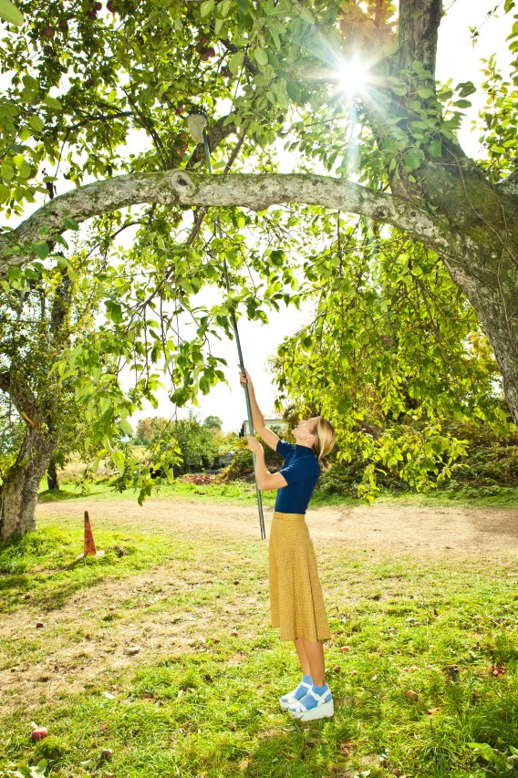 Even the woman on the phone wasn’t so sure we should come up. “Just so you know,” she said, “the apples are scarce! Columbus Day weekend was really busy.” Everyone and their mother must have been at the Outhouse Orchard because when we got there most apples were either on the ground, rotting, or inhumanely high up in the trees. “But if you can’t fill up your bag, you can come and top it up with apples from the bins here. We have every kind!” she reassured us. No way. What fun is that?? We may be city folk and it may be slim pickings but I’ll be damned if I leave one apple hanging in those trees. And so we set forth, with a huge stick of some kind, a sad little empty bag and the courage of four lions…