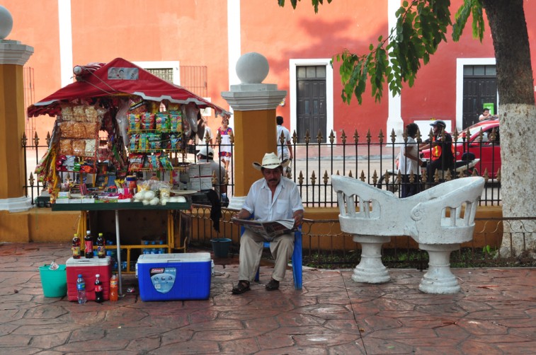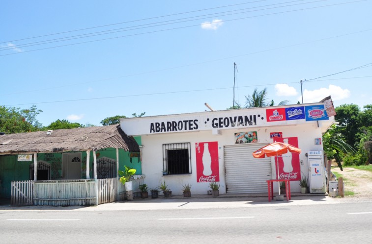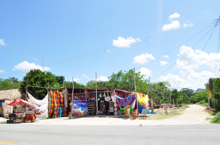 The road from Tulum to Valladolid is a monotonous, single-lane highway. Besides exotic shrubbery and a few Mexican strip malls – really just a cement shack with rusty wired candy displays – there’s not much more than the faint and feel-good memory of the white sand and soothing ocean you left behind. If you’re moving fast the slower vehicles in front of you will veer to the right to grant you passage down the middle. It’s an unspoken but highly effective rule here. No one’s anxious or honking. At every major junction uniformed men with machine guns check your car and ask tactical questions: “Where are you from? Where are you going? Did you rent this car?” It’s routine business but nonetheless a little unsettling after spending days on a beach, away from civilization, barefoot and carefree.