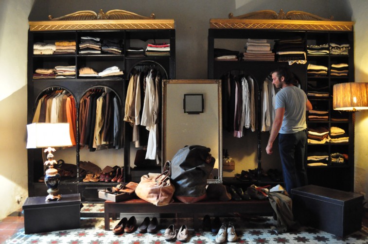 When he’s not in shorts and t-shirts at work, Nicolas loves to wear his grandfather’s and uncle’s old clothes. It’s a slightly disheveled but nonetheless elegant look, dominated by earthy, rich colors and perfected with the right pair of moccasins. I am stunned at how shoes this worn-out can look this good. (I could never pull that off!) At one point Nicolas was hired as a consultant by Gucci. He shows me a vintage tweed coat, and the black Gucci cashmere wool knock-off he stores in a garment bag. “They made an exact copy of this coat but the wool they used was better and absolutely fantastic!” Nicolas used to go vintage shopping a lot when he lived in Brooklyn. He doesn’t like spending too much money on clothes. “That’s why I can afford to have a few houses,” he laughs. And he remembers the origin and story behind every piece he shows me. The most intriguing and valuable piece of information he shares is about his vintage mustard alpaca scarf. Apparently these scarves go for an average of $3000 right now because the wool is very rare and the alpaca sheep are protected. “You will not see this scarf anywhere else!” he says triumphantly. “Alpaca wool is like fine cashmere. They make it from the shortest hair on the sheep’s back, which is the only place where the animal’s hair can’t get damaged.” Must be a very small spot….